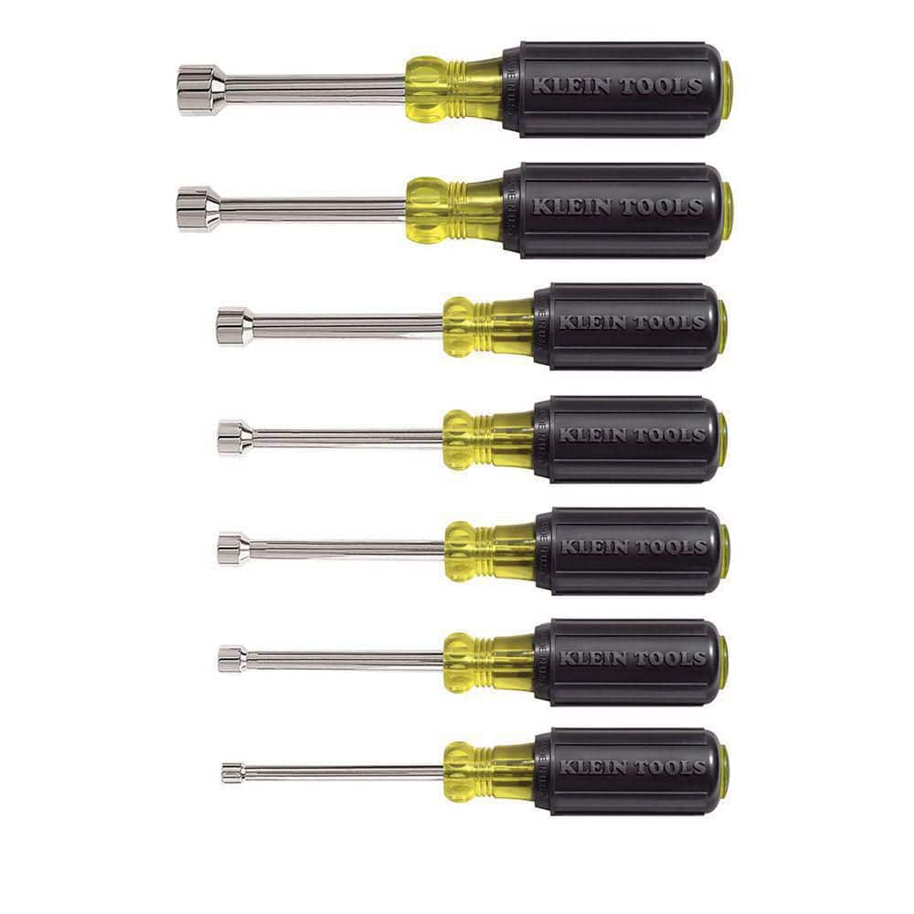 A pro-grade 7-piece nut driver set featuring 3-inch hollow shafts for long bolts and color-coded Cushion-Grip handles for comfort and quick size ID. Chrome-plated shafts resist corrosion, and integral flanges provide a twist-resistant anchor for durability.