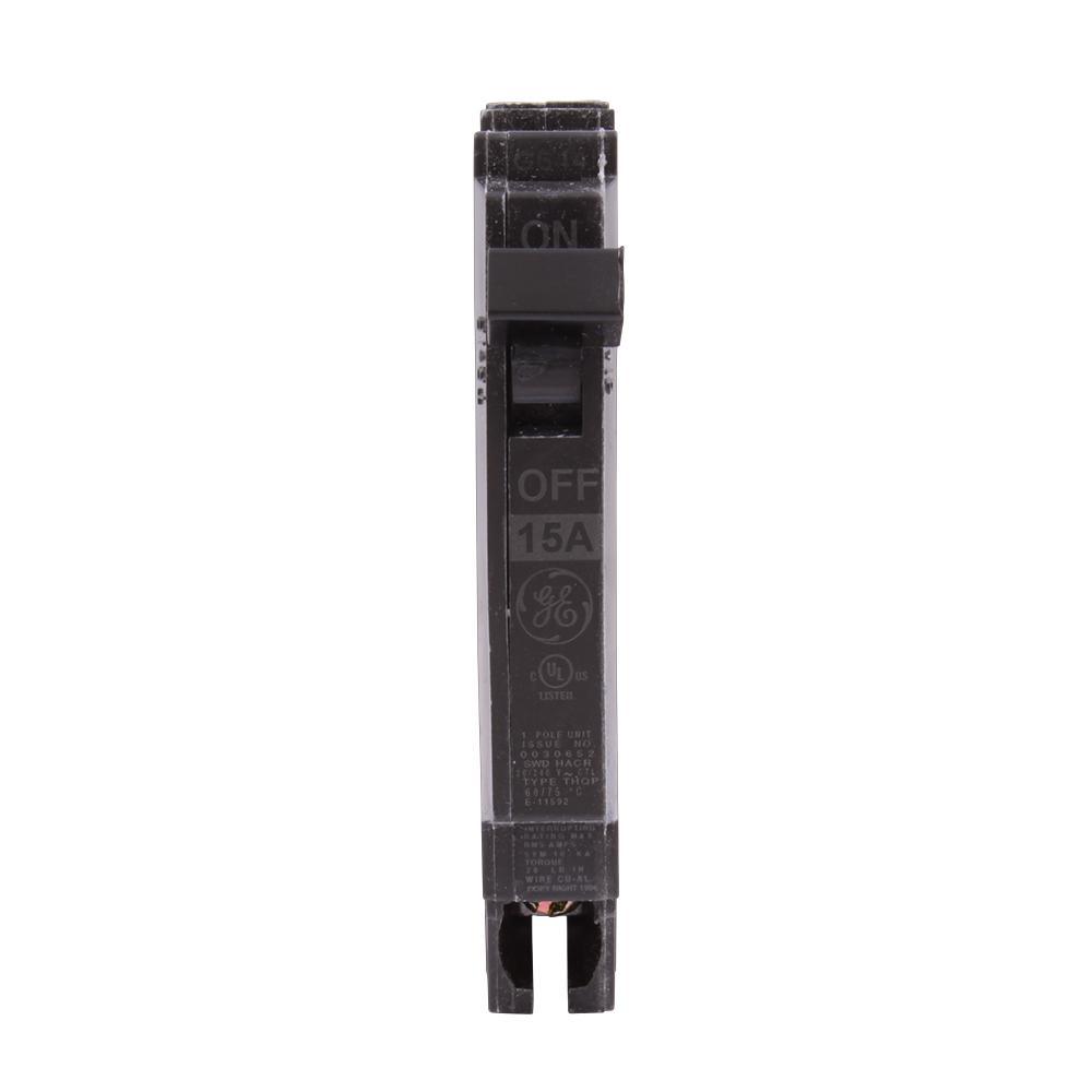 The GE Q-Line 15 Amp 1/2 in. Single-Pole Circuit Breaker has a tin-plated copper stab to create a reliable, permanent and corrosion-resistant connection. The unit has a dedicated calibration screw which is cemented to prevent shifting. The attached screw creates a stable calibration for optimum performance. The case is made of heat-resistant thermoset for stability and structural integrity.