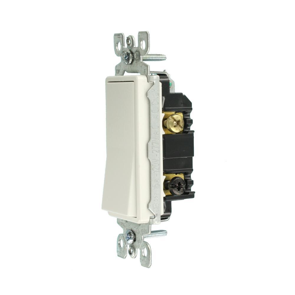 The Leviton Decora 15 Amp Single-Pole 3-Way Illuminated Rocker Switch is UL-listed and can control lights from 2 locations ((2) 3-way switches must be used in a 3-way circuit). It has a white color and is illuminated when in the Off position for convenient location in the dark. It replaces any standard 3-way switch and can be paired with a Decora wall plate (sold separately) to customize its appearance.