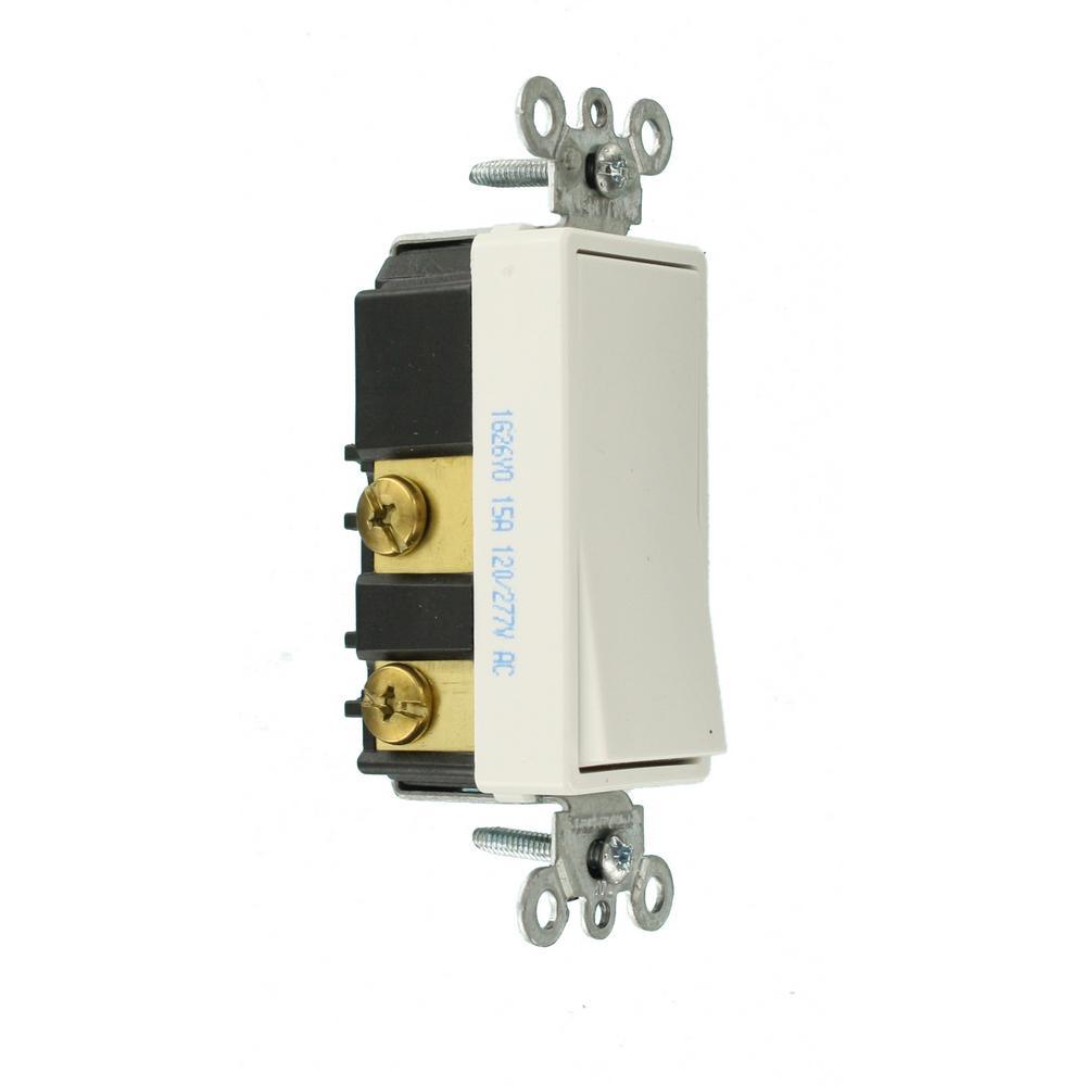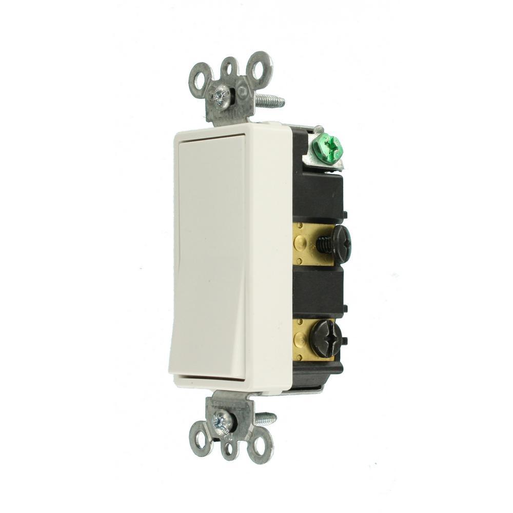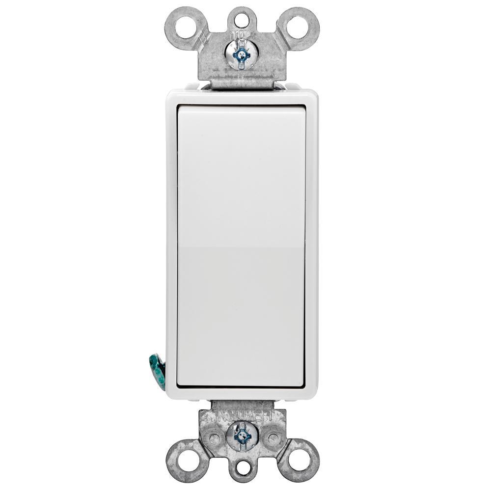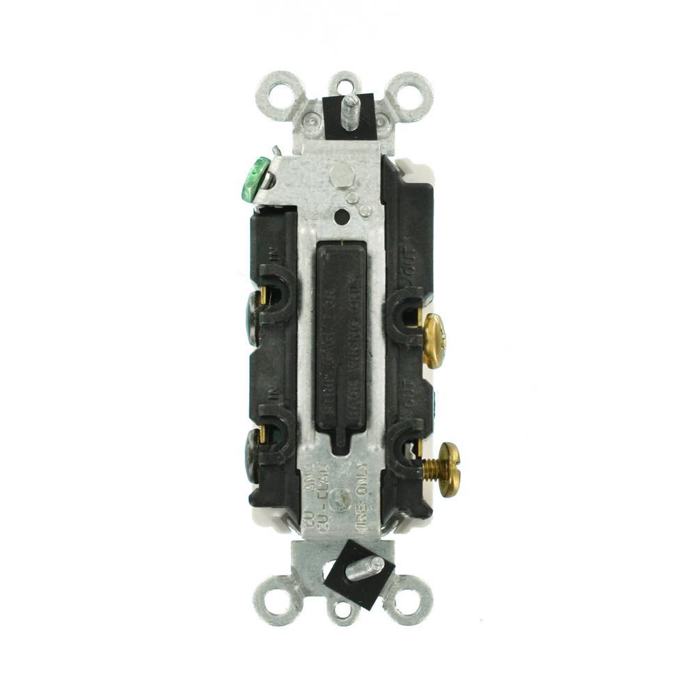 The Leviton 15 Amp 4-Way Switch helps protect against electrical shocks due to ground faults. Featuring Quick wire push-in wiring, this convenient switch helps you control lights from 3 locations when used with two 3-way switches. The switch is UL listed for safety and is designed for use with a decora wall plate.