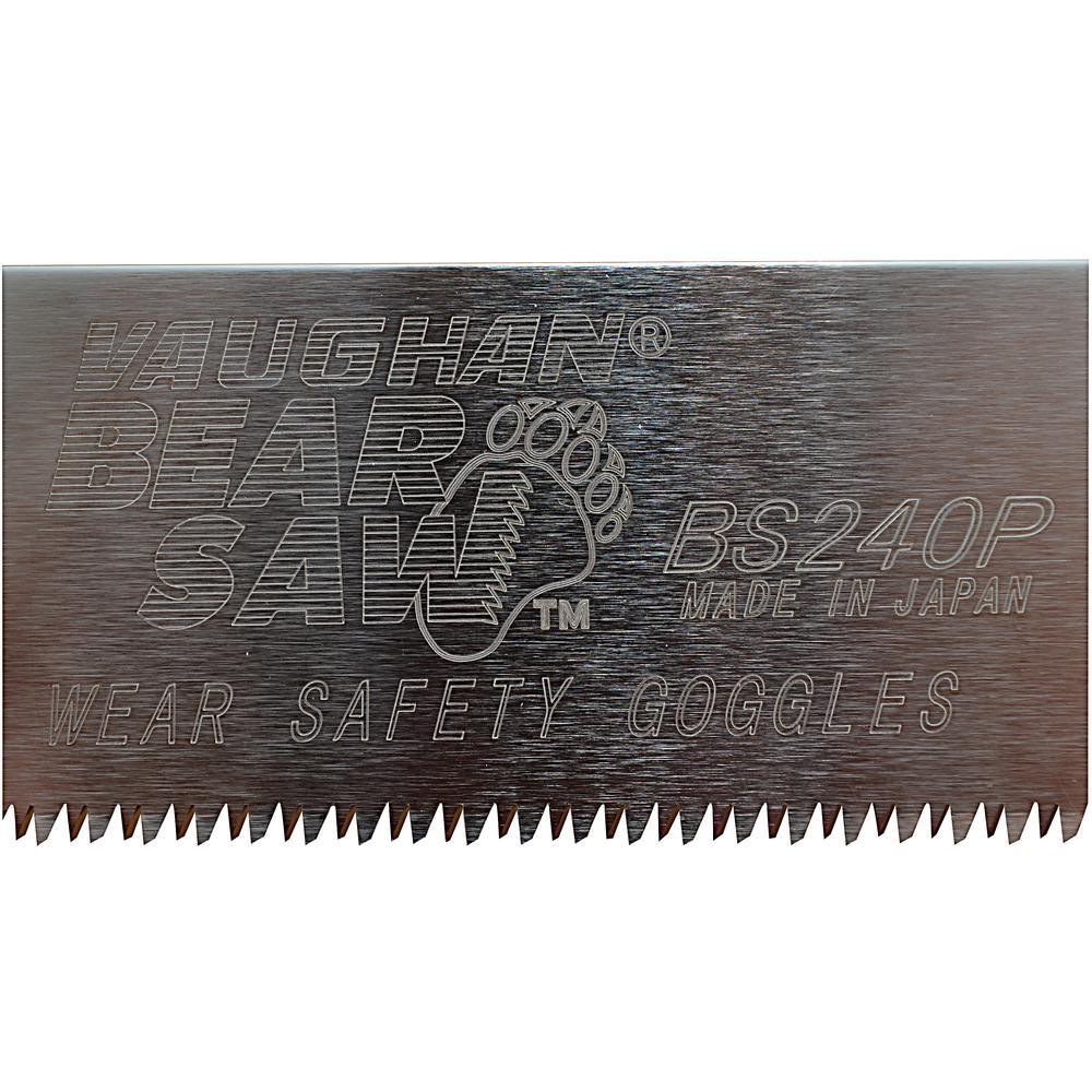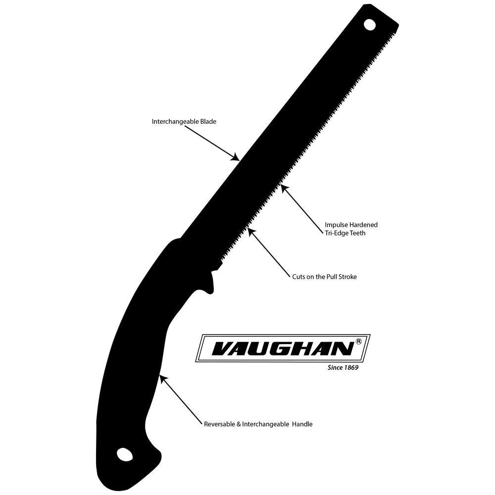 Vaughan Bear Saws are made to cut on the pull rather than on the push stroke. This allows for a thinner blade, which removes less material. This makes sawing easier, faster and more accurate. Bear Saw blades are durable spring steel, plated for rust resistance. The specially ground, tri-edge teeth are impulse hardened to retain their sharpness.