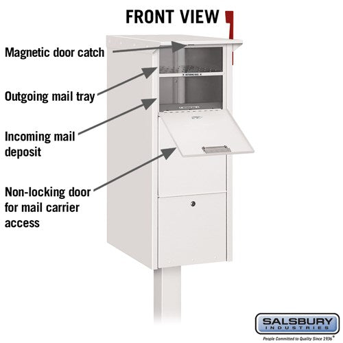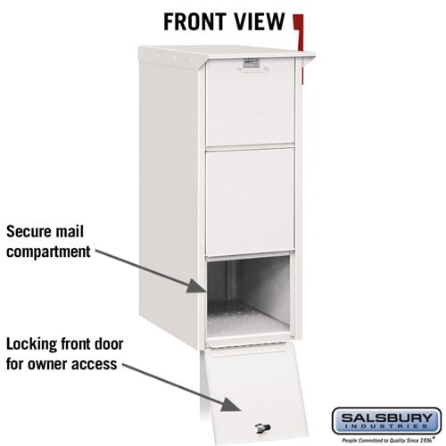 Secure White Mail Package Drop Box with Locking Doors and Signal Flag