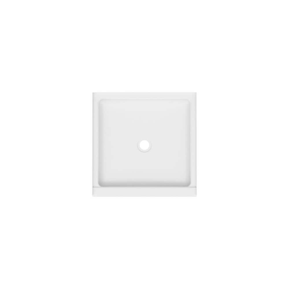 A durable Veritek shower base designed for alcove installations with a center drain. Its non-porous, solid-surface construction resists mold and mildew, while a slip-resistant pebbled texture enhances safety.