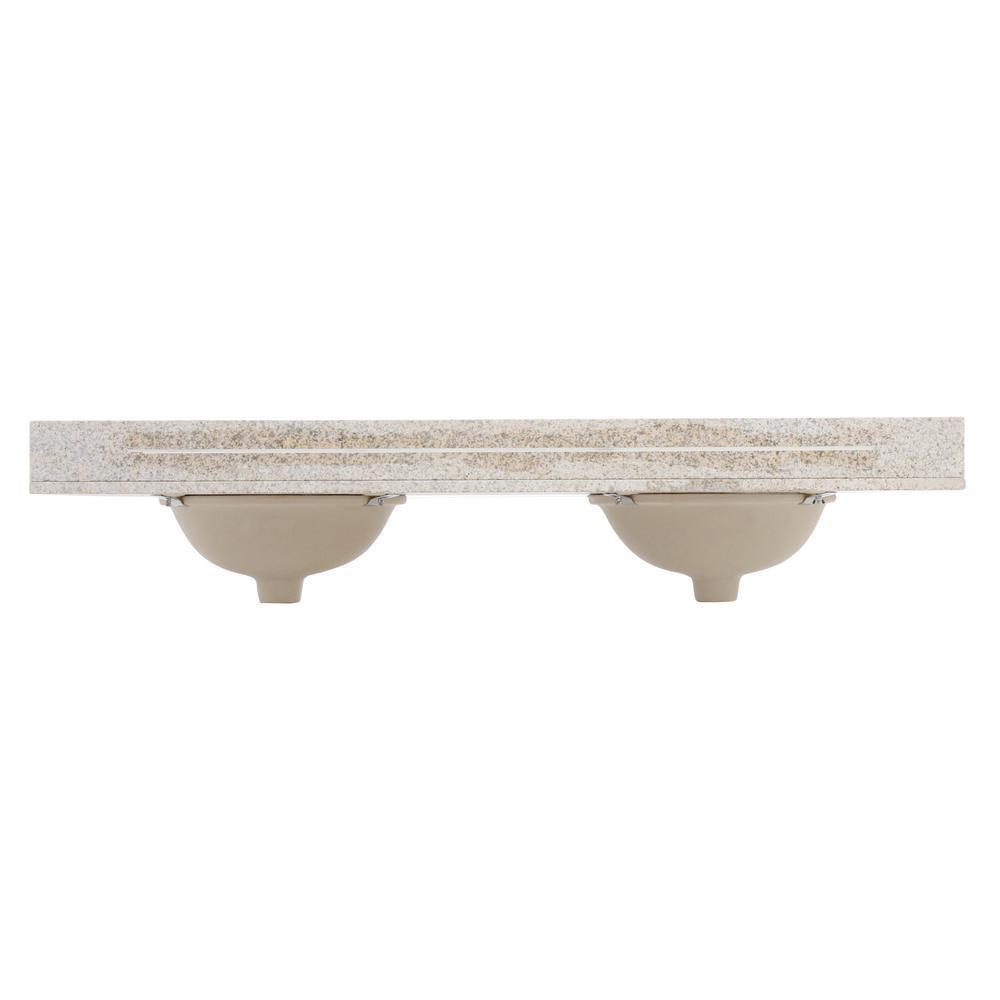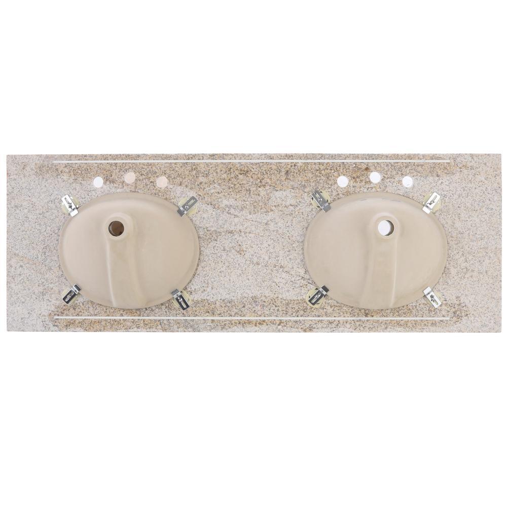 61 in. Granite Vanity Top in Beige with Double White Bowls and 8 in. Faucet Spread
