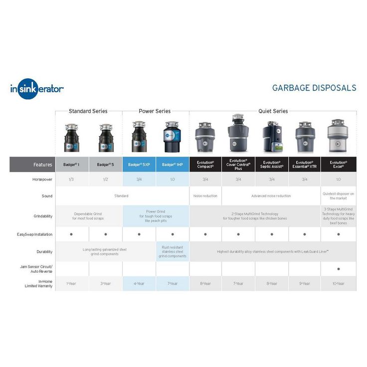The InSinkErator Evolution Compact 3/4 HP Continuous Feed Garbage Disposal is perfect for small households and houses with restricted cabinet space. It has a 34.6 oz. grind chamber with stainless steel grind components, and features MultiGrind technology that allows it to break down hard-to-grind items. It also features our SoundSeal technology which delivers quiet performance versus a standard disposer.