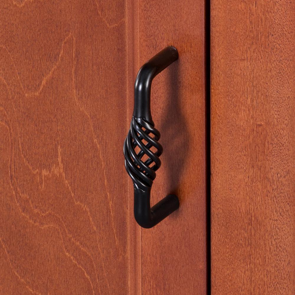 Black birdcage-style hardware included
