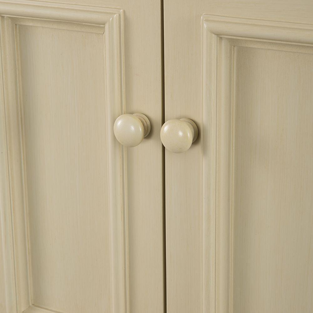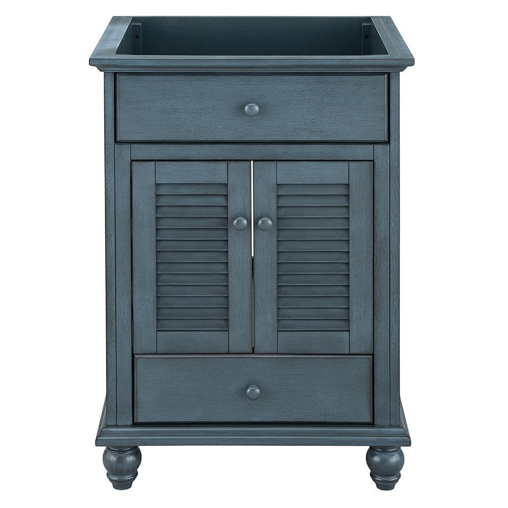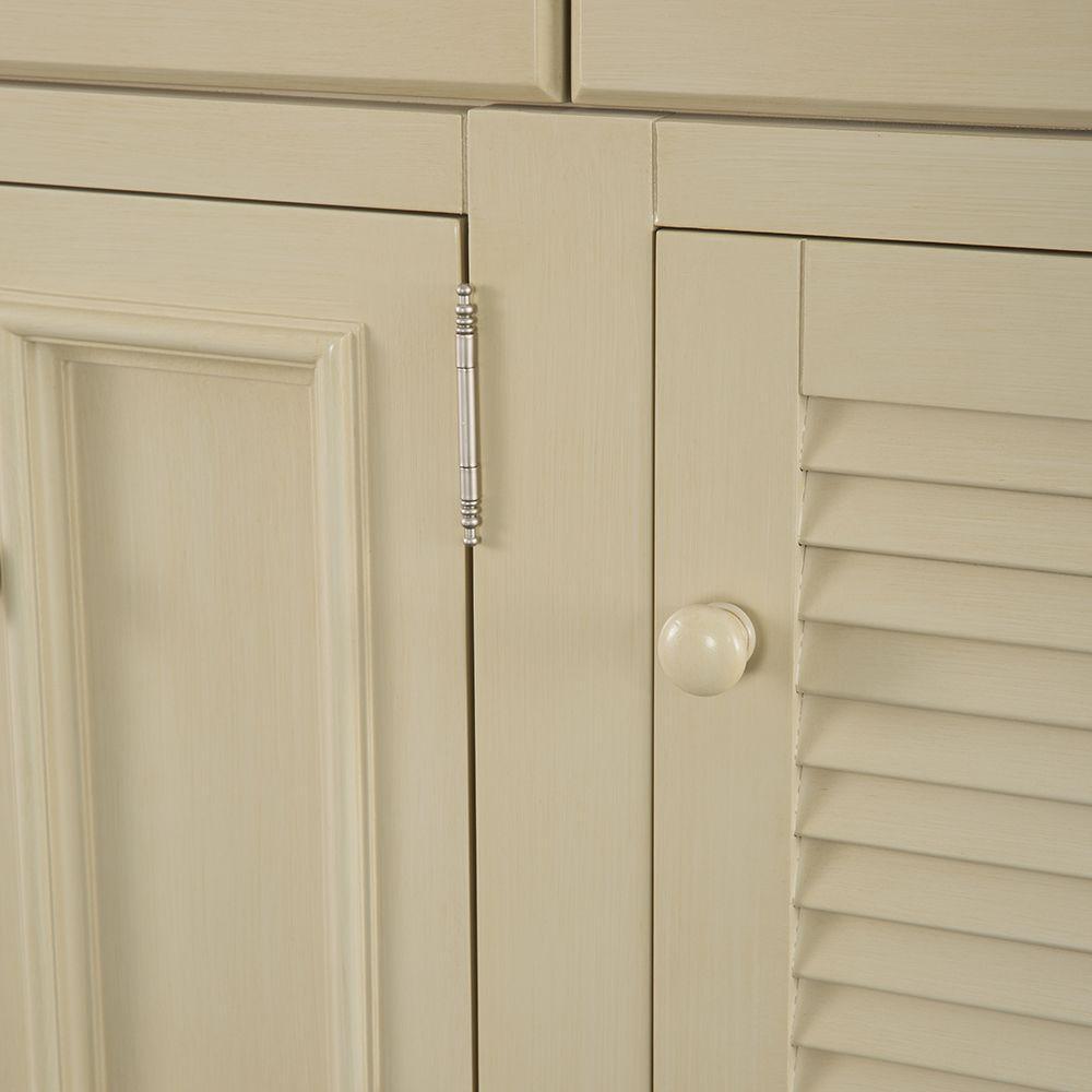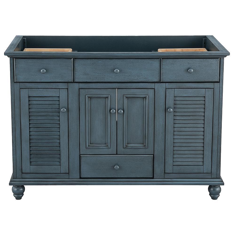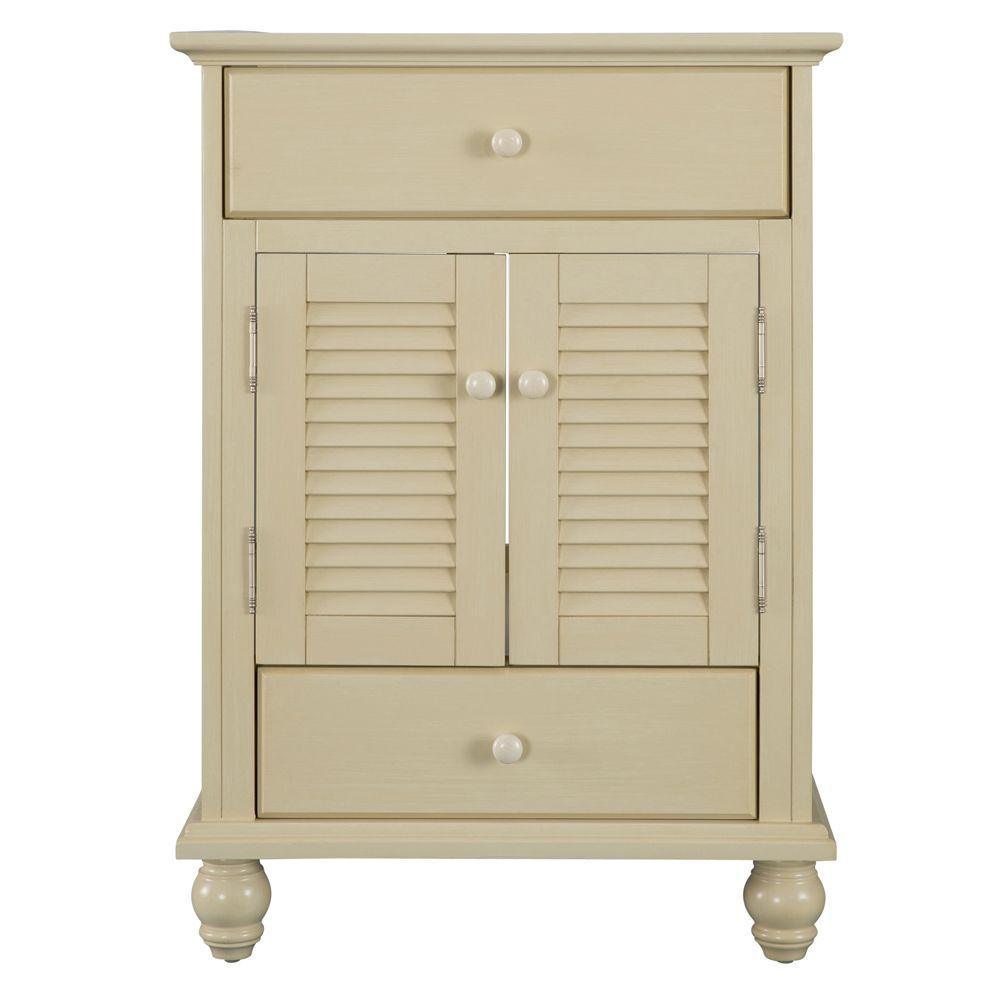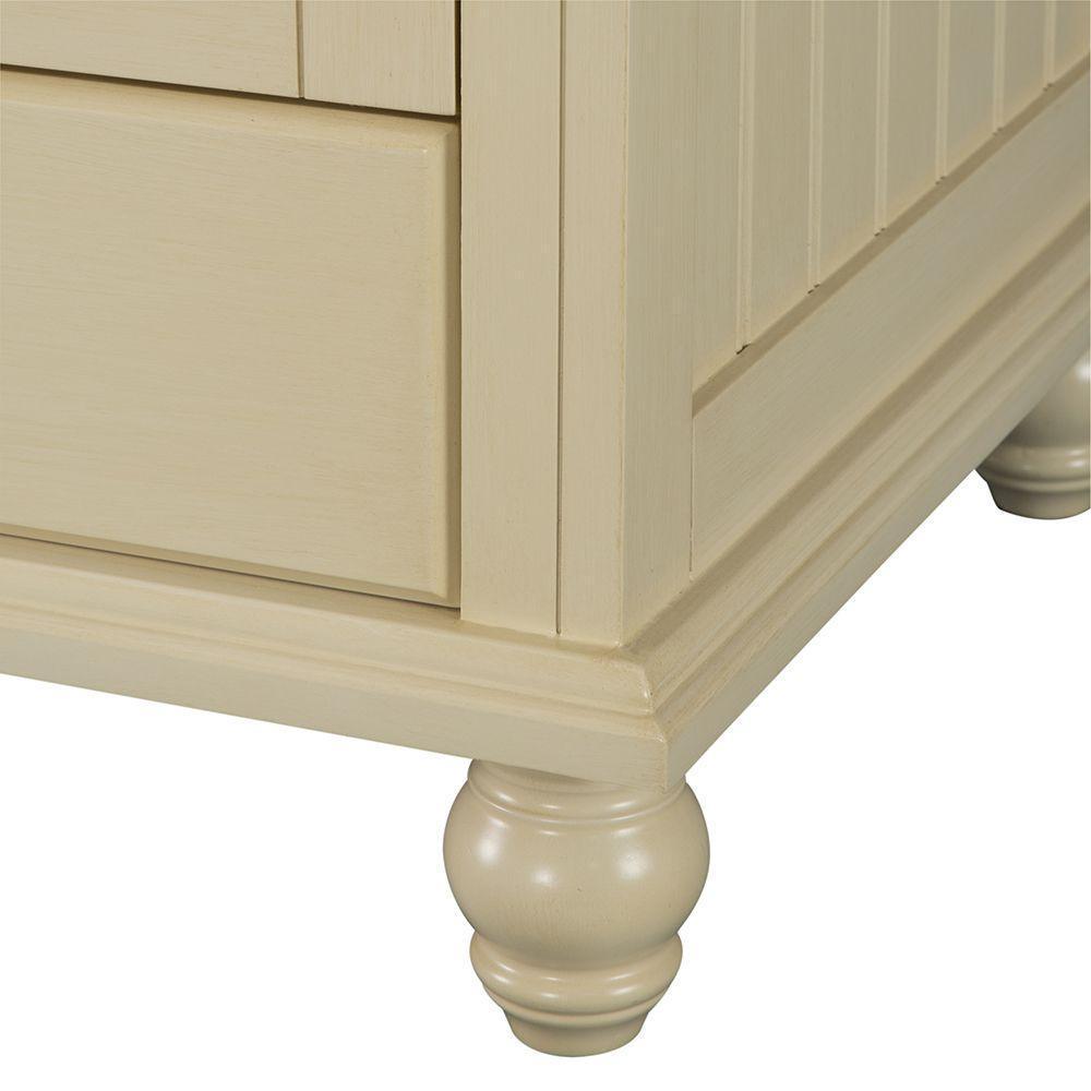 With beadboard-style side panels and louvered outer doors, this vanity cabinet will give your bathroom the look and feel of a rustic cottage. The antique white finish on this piece evokes cleanliness and calmness, bringing a sense of tranquility to your home. At 48 in. W, this vanity is an ideal size for homeowners who desire plentiful countertop surface area in their bathroom. A fully extending bottom drawer adds to the ample storage space you'll find behind the two doors above and a door on each side. Explore the Foremost Cottage collection for wall/floor/medicine cabinets and wall mirrors in the same style.