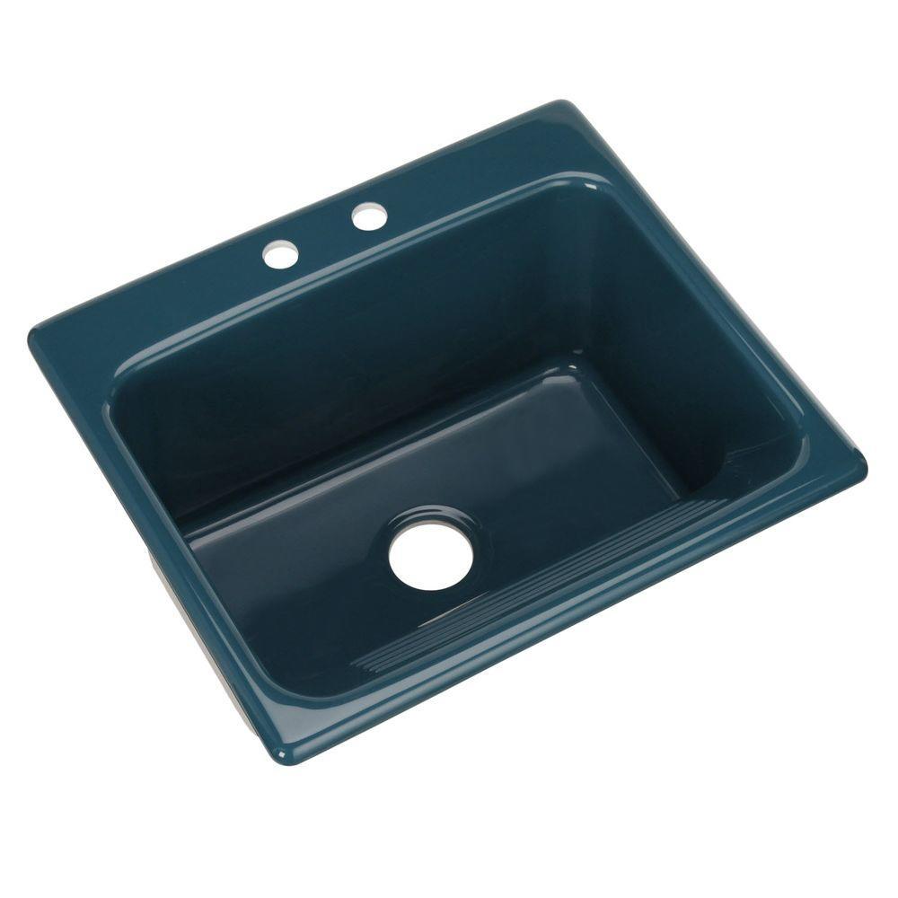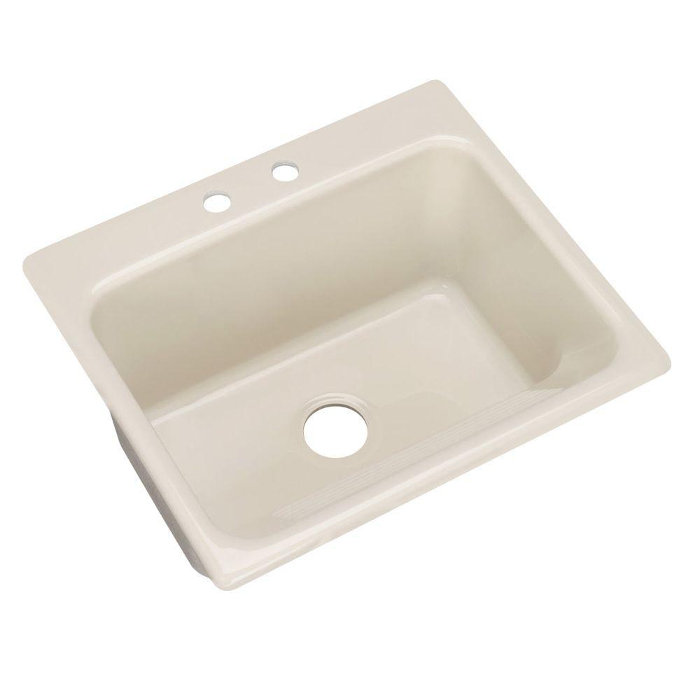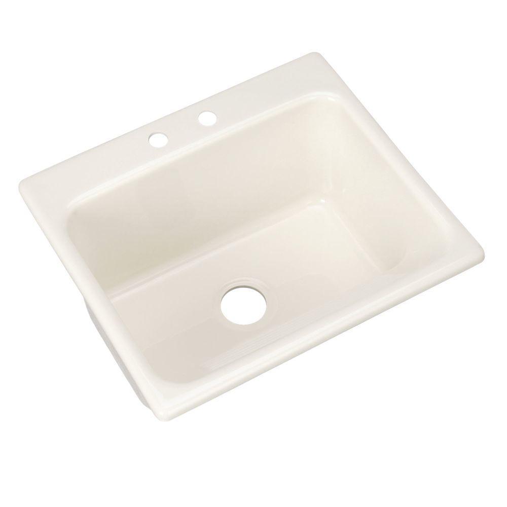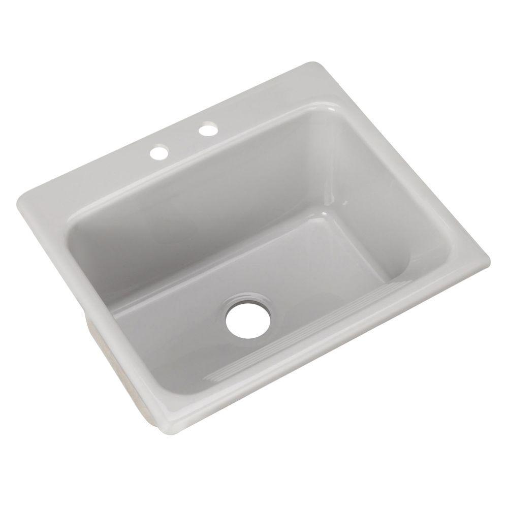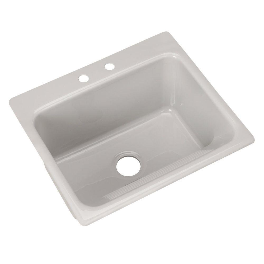 A "Master Collection" uniquely designed Thermocast cast acrylic single bowl laundry/utility sink with a rich high gloss finish that is easy-to-clean with non-abrasive cleaners. It has a deep bowl to maximize workspace and functionality with the beauty of porcelain and strength of cast iron yet lighter weight. The insulated construction absorbs noise and resists stain, rust, oxidation, chipping, and scratches. The surface can be polished with ordinary liquid sink, countertop, or auto polish to maintain beauty and luster. It is versatility designed for both drop-in and Undermount ready for quick and easy installation. Plumbers putty for drains and silicone sealant for perimeter of sink is all that's needed. All Thermocast brand cast acrylic sinks are certified by the Canadian Standards Association and the National Association of Home Builders Research Center and carry a Lifetime Warranty.