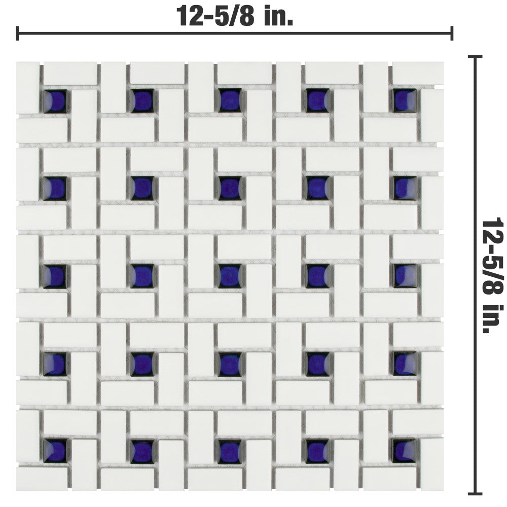 Spiral Blue/White Porcelain Mosaic Tile, 12-1/2 in. Sheet