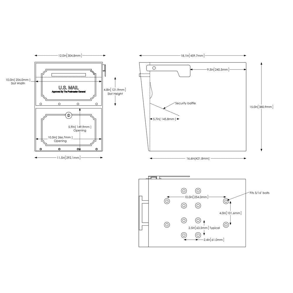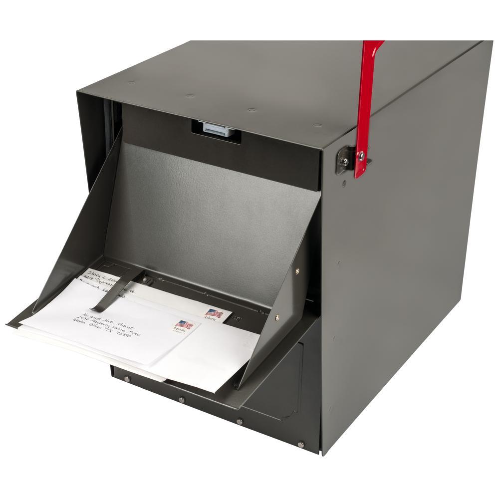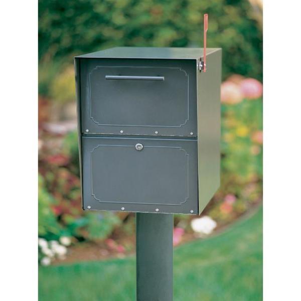 For mail and small parcel security, choose the Architectural Mailboxes Oasis Classic Locking Post-Mount Mailbox. 1-piece outer shroud construction resists moisture and wear from the elements and the incoming hopper and mail retrieval doors feature rubber seals to help keep contents dry and protected. Heavy 16 and 14-Gauge galvanized steel construction ensures lasting use and the mailbox features a powder coat finish. Incoming hopper and mail retrieval doors feature rubber seals to keep mail clean and dry. Included hardware is made from stainless steel and other corrosion resistant materials. Can be mounted on a pilaster, column or wall. Includes protective heavy duty bracket for lock reinforcement and a lock that is pry resistant, pick resistant and drill resistant.