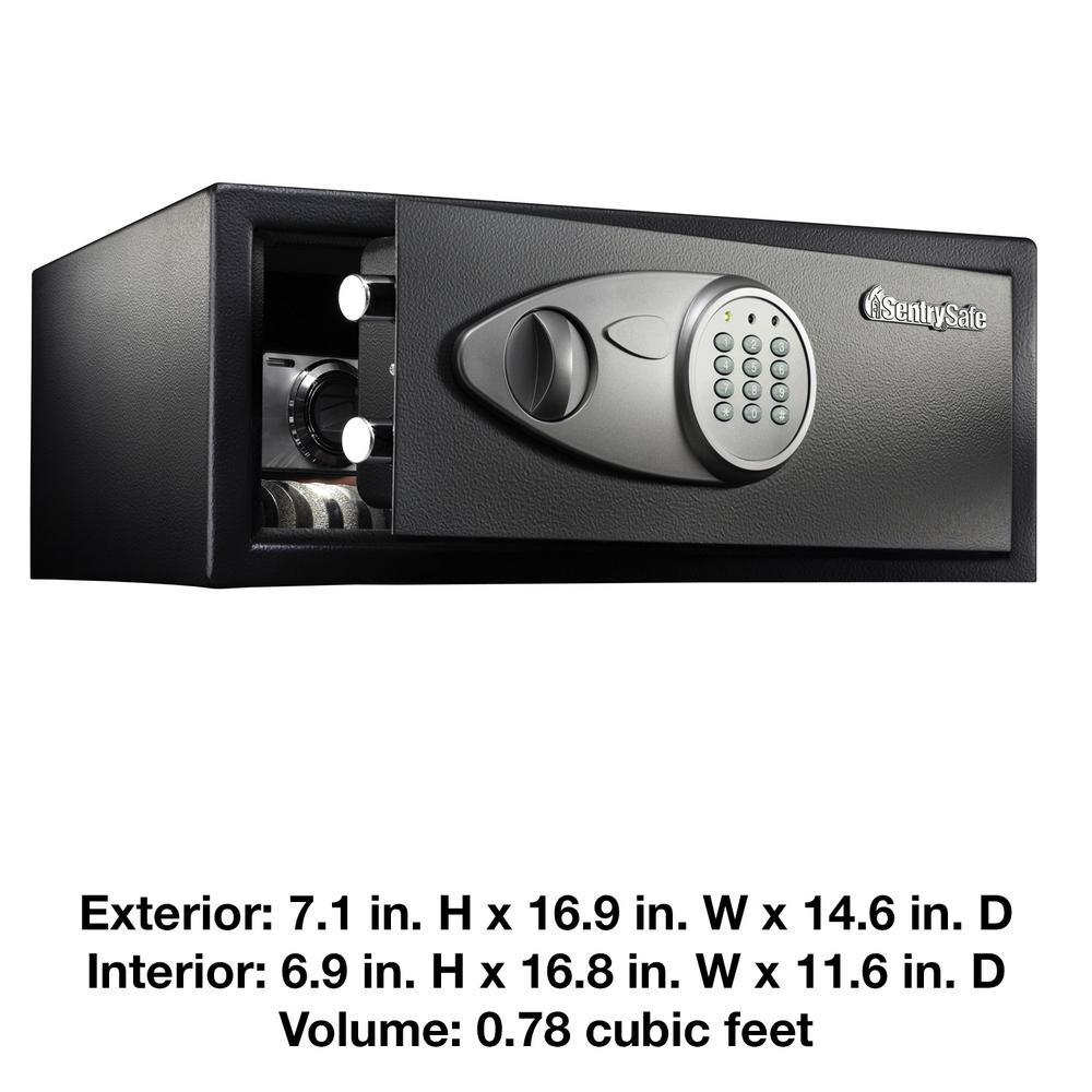 Basic security safe for home as a theft deterrent; digital combination safe features 2 live-locking bolts, steel construction, concealed hinges, carpeted floor, and bolt down hardware