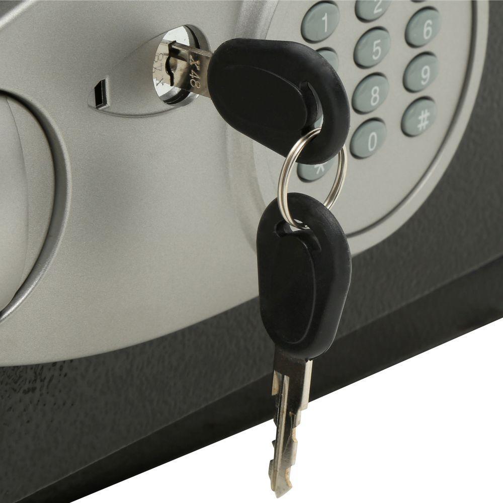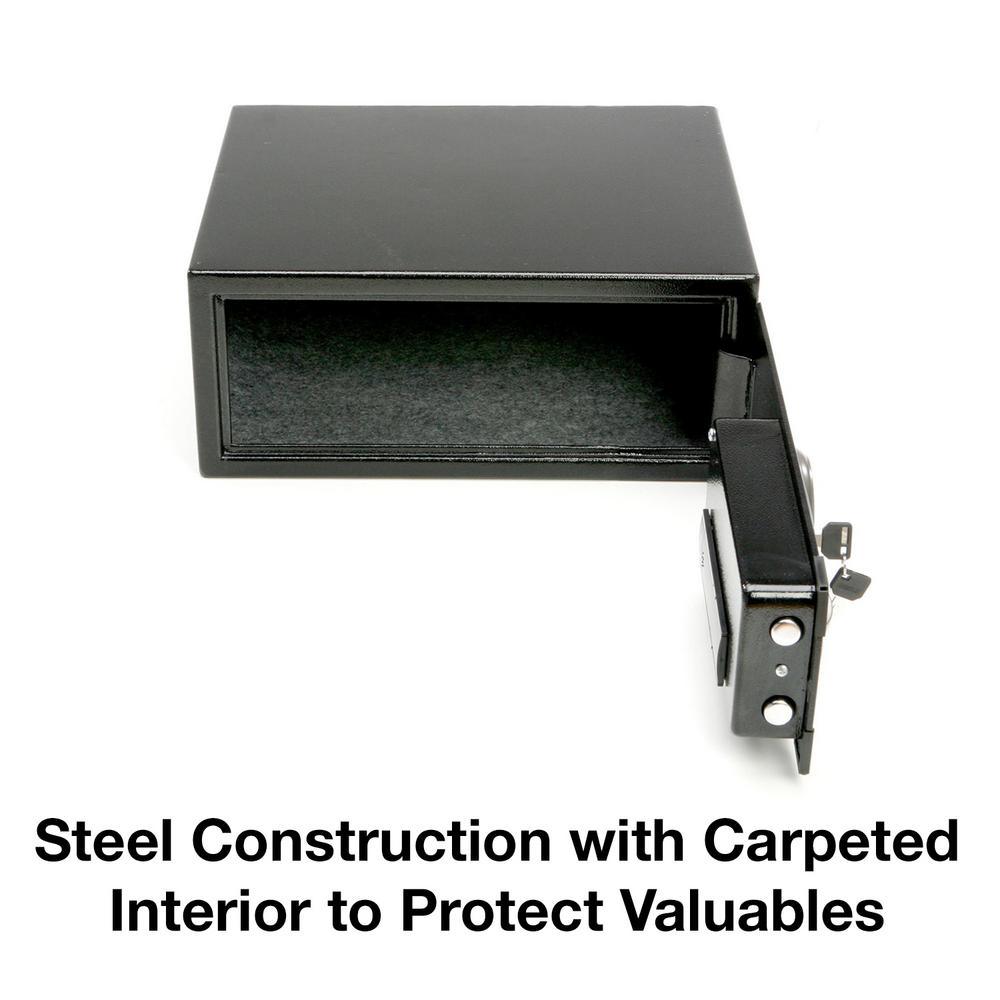 Set your own digital combination with this medium-wide safe box; two override keys ensure you will always have access to your valuables; not a fireproof safe or waterproof safe