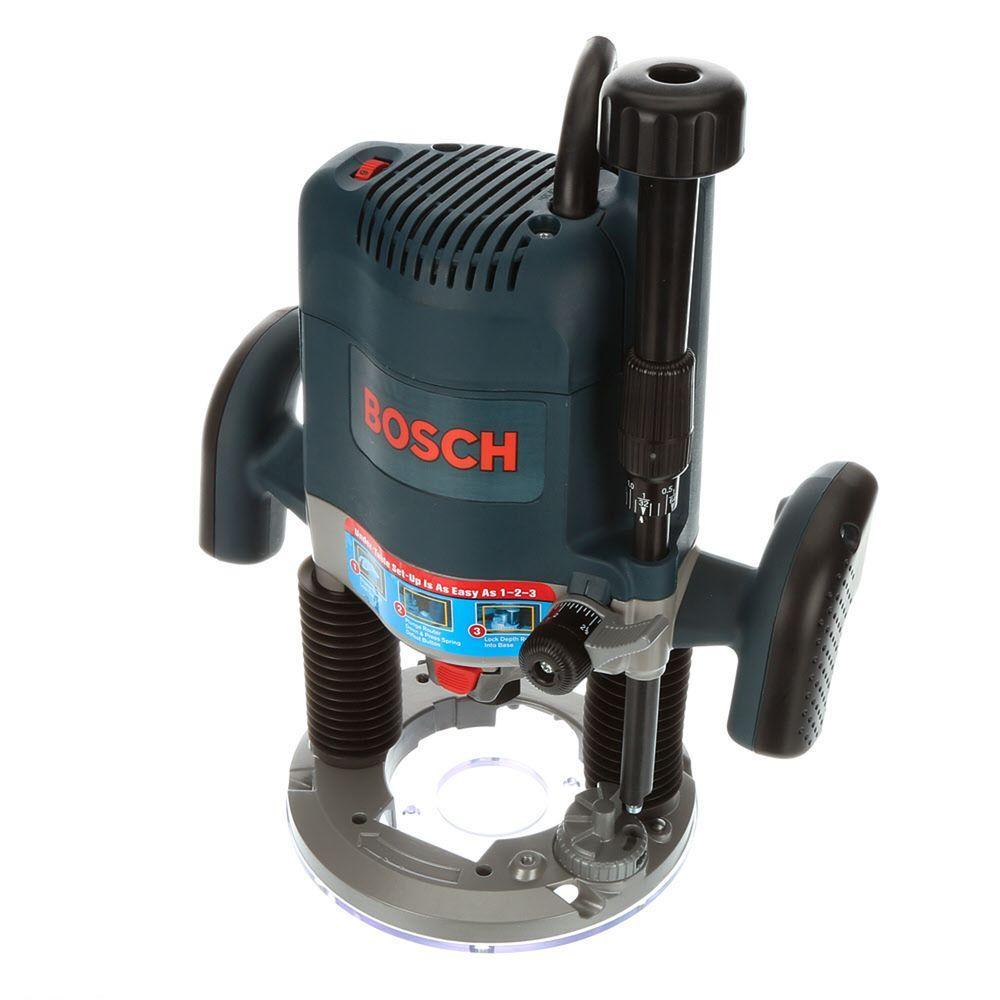 The Bosch Plunge Router is a versatile router that converts easily for use with a router table and back to upright use. The powerful 3.25 HP, 15 Amp motor delivers 8,000 RPM - 25,000 RPM in variable speeds. The router features aluminum construction with wood handles on the fixed base and a soft-grip handle on the plunge base.