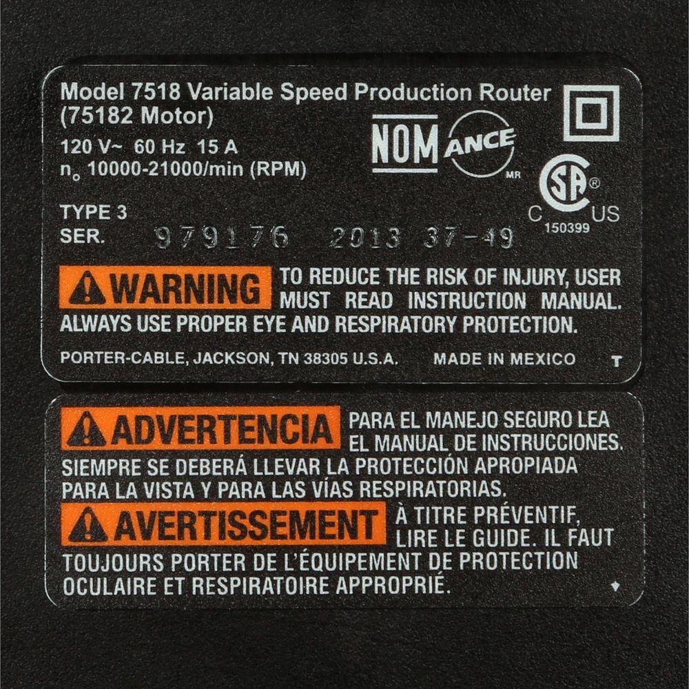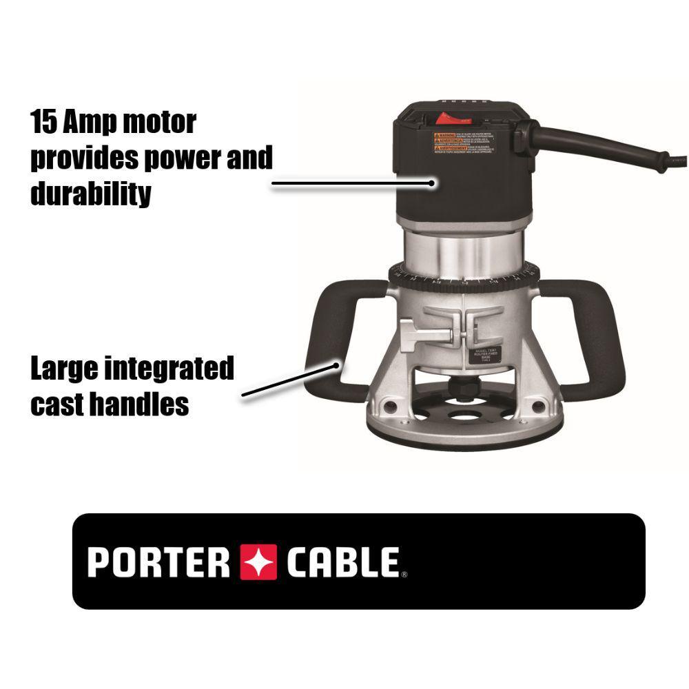 The Porter-Cable Speed Router features a 3-1/4 HP, 15 Amp motor that provides you with the power and durability you need for the toughest applications. With an electronic 5-speed motor, you can find the ideal speed setting for your work. The soft start safety feature reduces torque at startup and the motor maintains constant speed under load.