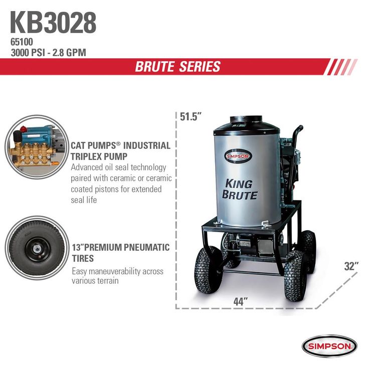 The SIMPSON Brute Series offers a robust lineup of hot water pressure washers for industrial cleaning applications. Industry experts rely on the Brute series to enhance cleaning power and efficiency. This powerful SIMPSON mobile pressure washing system will handle all your commercial jobs