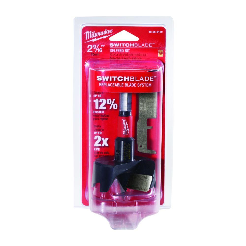 The Milwaukee 2-9/16 in. Switchblade Selfeed Drill Bit goes places where hole saws cannot. When you need to drill large-diameter holes in beams, planks, boards, logs, timber and lumber, this self-boring bit will make your job easier. Recommended for use in continuous-torque drills, the replaceable blade is made of hardened steel with an aggressive feed-screw design that makes hole drilling a less arduous task.