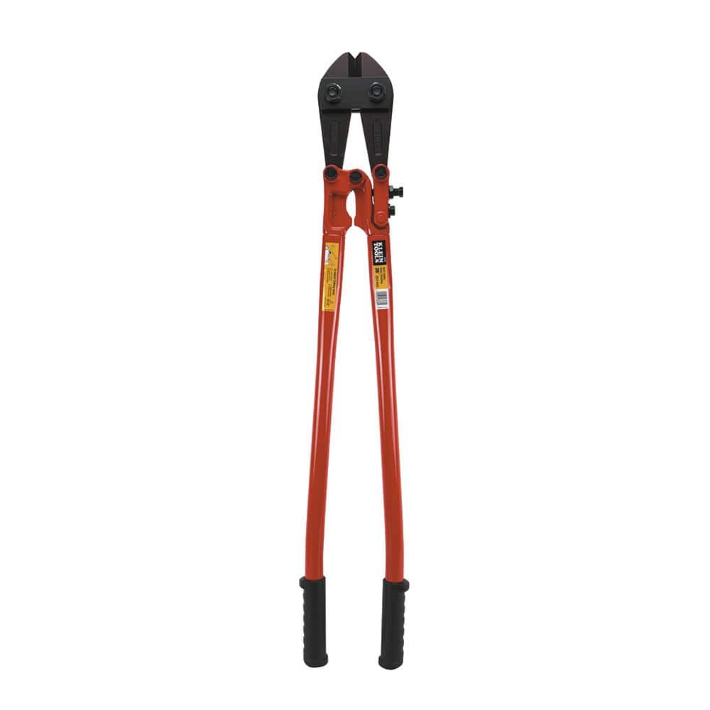 Heavy-duty 36-inch bolt cutter from Klein Tools with forged alloy steel, precision-ground center-cut jaws for fast, clean cuts. Steel handles with heavy vinyl grips deliver comfort and control for cutting soft, medium, and hard metals.