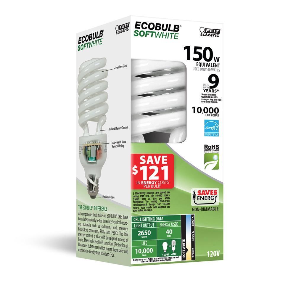 This product is a 12 pack of 40-Watt (150W) High Wattage Twist CFL Light Bulb. These compact fluorescent bulbs replace ordinary 150-Watt bulbs using 73% less energy to help save in energy costs. These earth friendly bulbs reduce hazardous materials and come in environmentally friendly packaging.