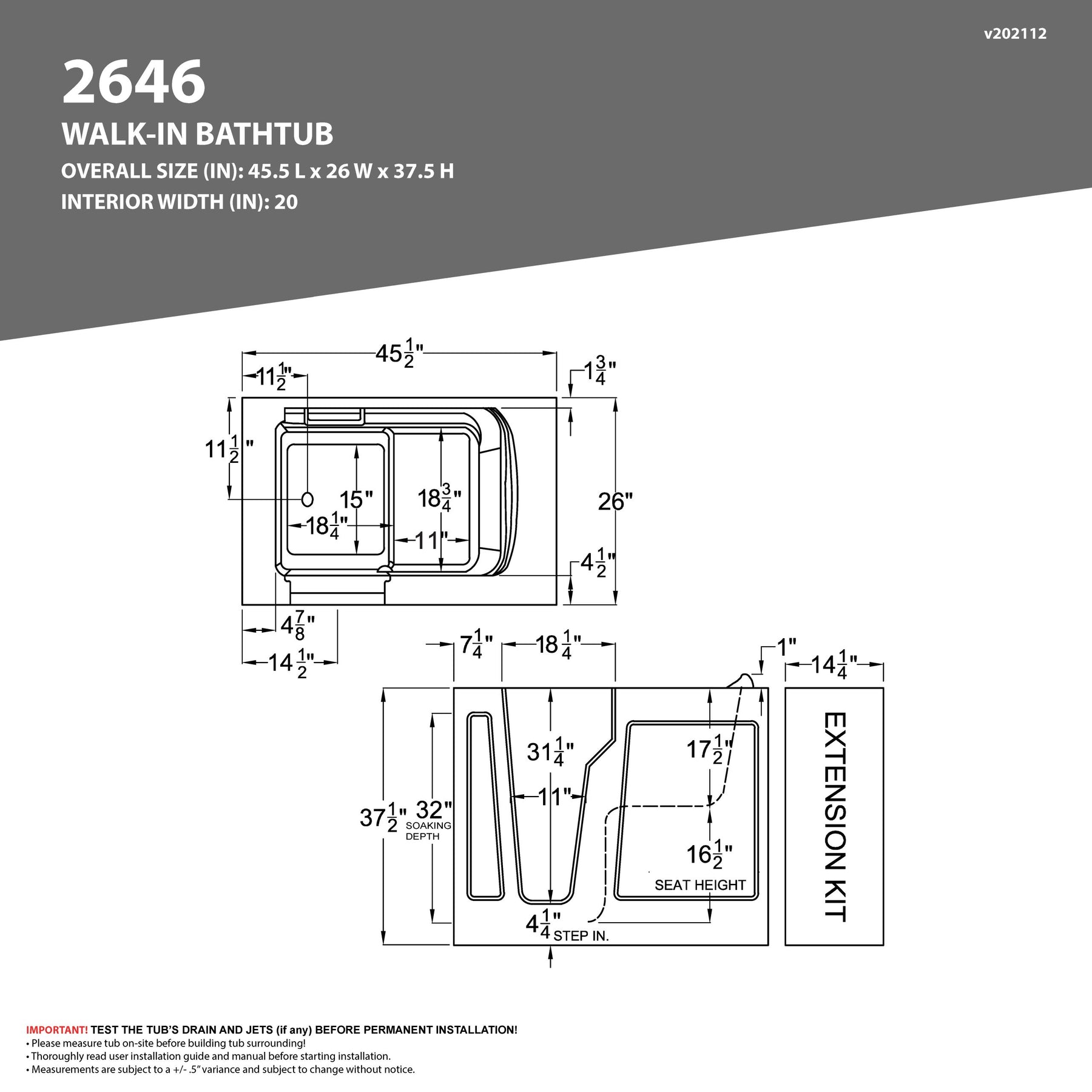 46 in. Walk-In Whirlpool & Air Bath Tub, Left Drain