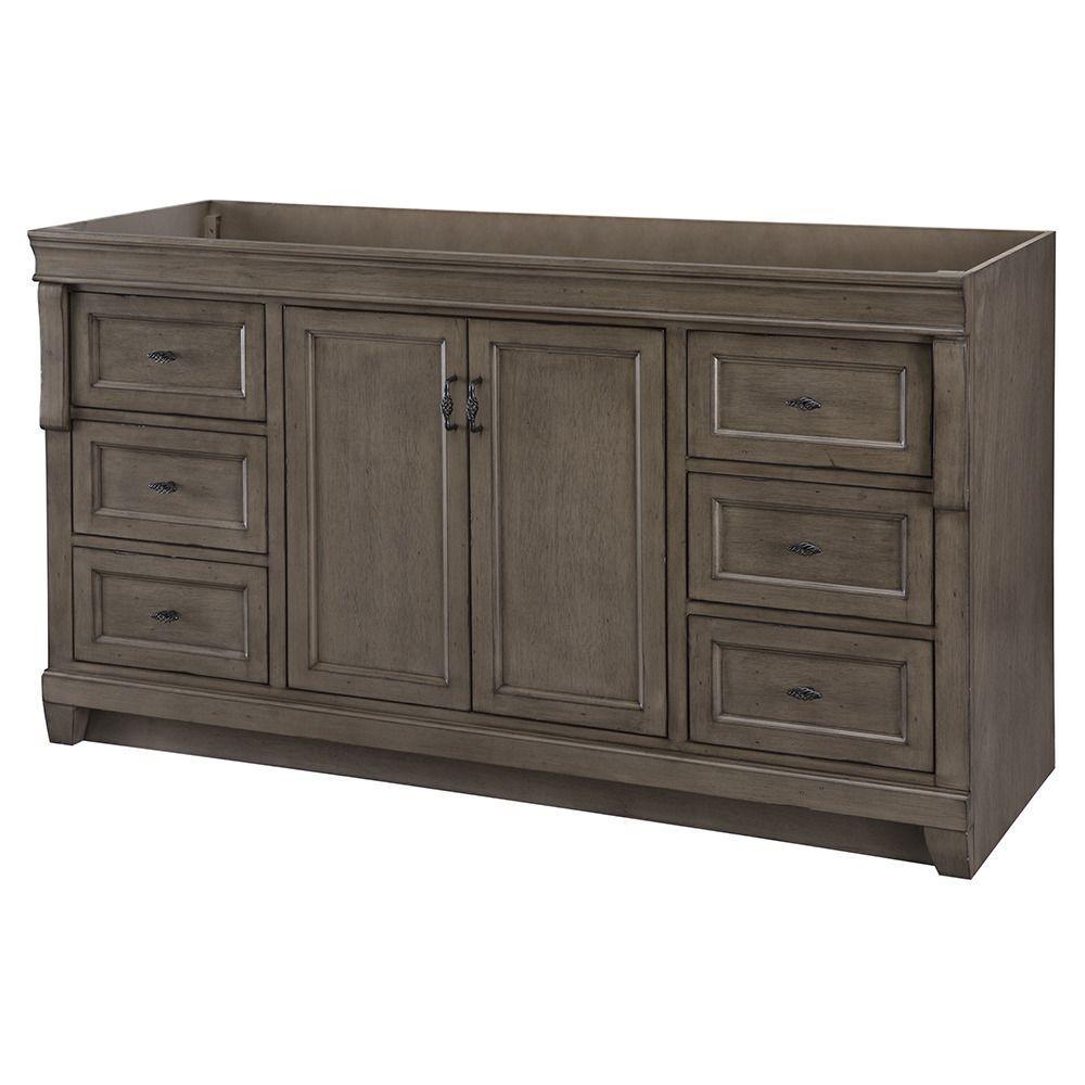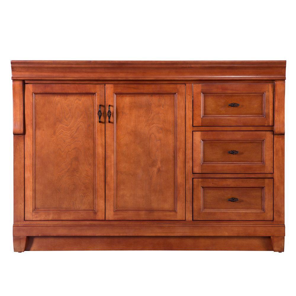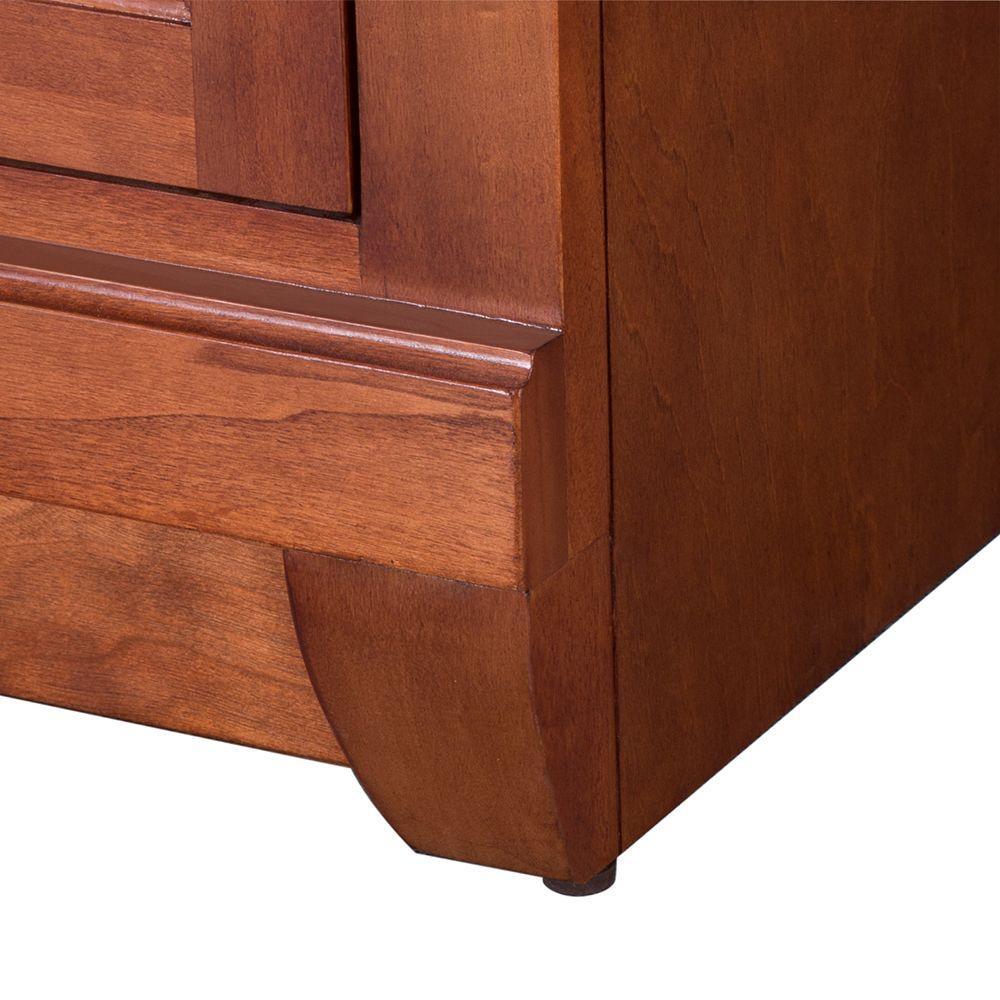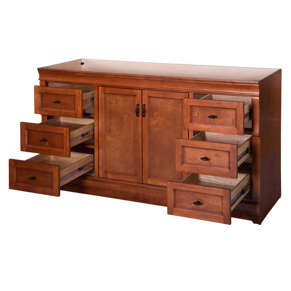 Awash with a warm cinnamon finish, this 60 in. single-bowl vanity is full-bodied and sits flush with the floor. Two large center doors and six outer drawers (three right, three left) are equipped with black birdcage-style handles that give it a vintage appearance. The solid, seamless construction gives homeowners the sense that it is custom built, while the generous storage space within accepts bathroom accessories aplenty. Cap this furniture-style bathroom vanity with a top/sink/faucet combination that ties the room together. Browse the Foremost Naples lineup for mirrors and wall/linen cabinets in the same collection.