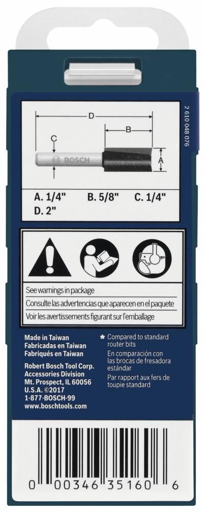 Micrograin carbide-tip router bit design – ensures consistently smooth finish cuts, with superior wear resistance