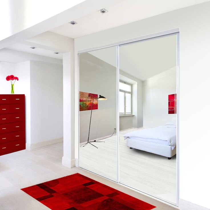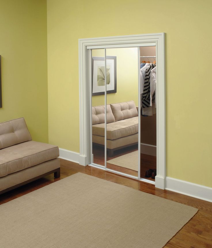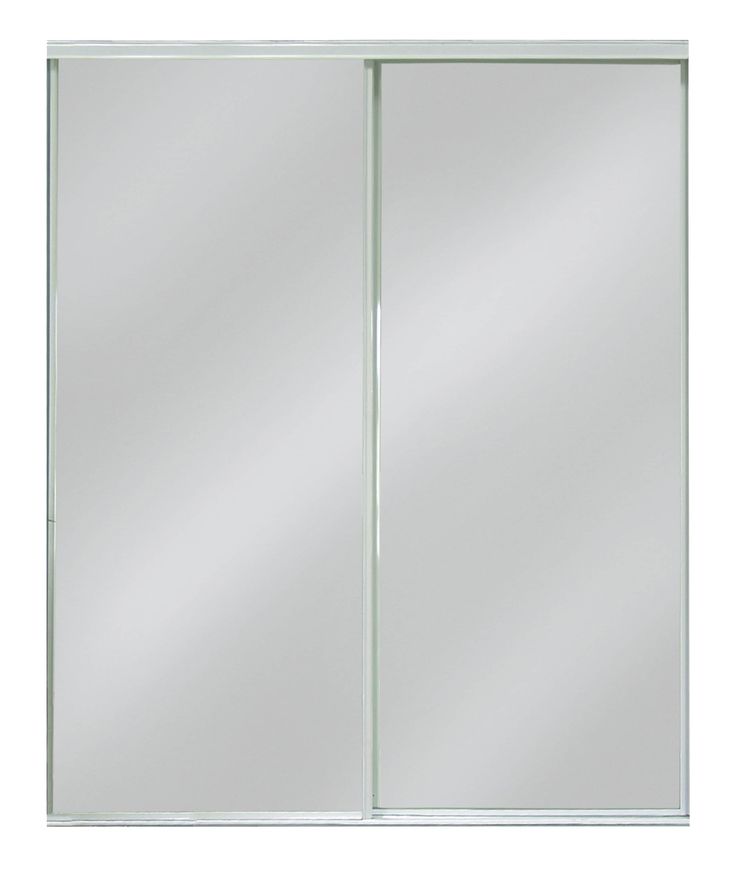 Fits openings that are 44-in. to 48-in. in width Fits openings that are 80-in. to 81-in. in height Category II safety backed mirror Includes (2) 24.25-inch x 78-inch panels with track and hardware needed for installation Adjustable for out-of-square openings Bright white steel frame construction Low rise bottom track for minimal floor obstruction Top and bottom track are prefinished to match door Mirrored doors provide uninterrupted, full-length reflections