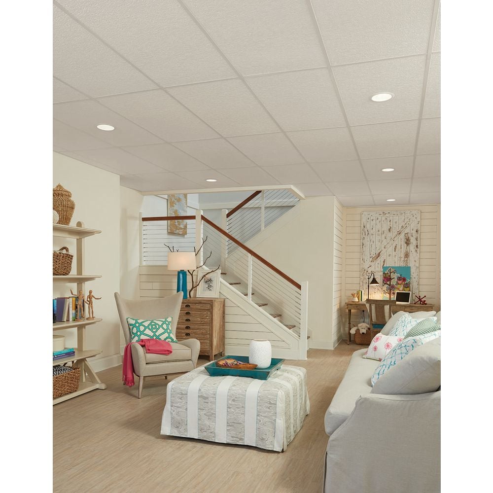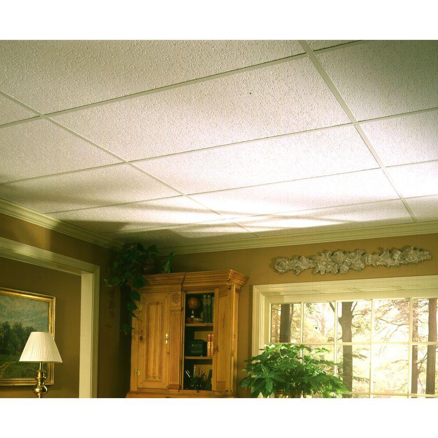 These Armstrong Ceilings Impression mineral fiber tiles bring a subtle stucco-like texture to suspended ceilings while improving acoustics. Designed for 15/16-in grid systems, each 2-ft x 4-ft panel offers Class A fire resistance and covers 64 sq ft per carton.