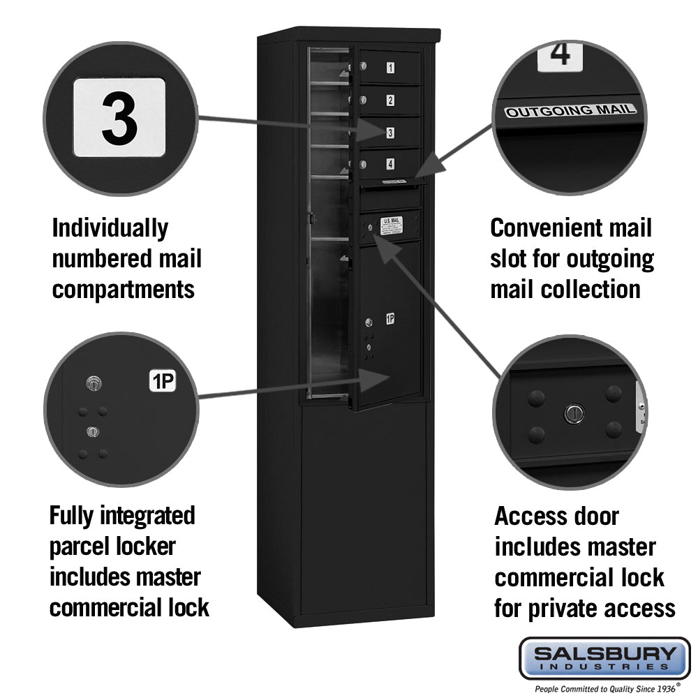 This free-standing mailbox unit is a testament to modern utility and design. Its sleek black finish and robust construction make it a standout feature in any environment, blending seamlessly with contemporary aesthetics. The integrated parcel locker adds a layer of practicality, ensuring secure package storage. Perfect for corporate spaces or residential complexes, this mailbox unit transforms functionality into a stylish statement.