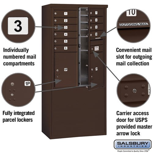 11-Door Free-Standing Mailbox with Parcel Lockers in Bronze with USPS Access