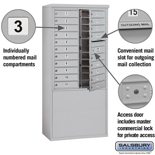 11 Door High Free-Standing 4C Horizontal Mailbox with 20 Doors in Aluminum with Private Access