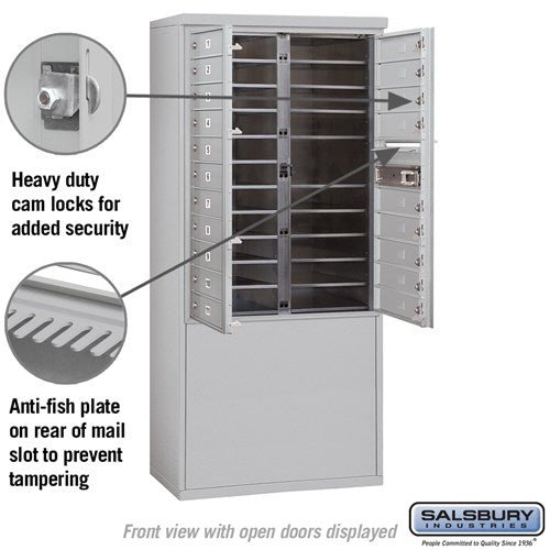 This free-standing 4C horizontal mailbox unit offers private access and is constructed from heavy-duty aluminum with stainless steel hardware. Ideal for indoor or outdoor use, it features a durable powder-coated finish and includes 20 doors with secure cam locks.