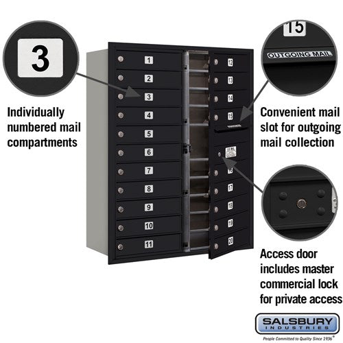 11 Door High Recessed Mounted 4C Horizontal Mailbox with 20 Doors in Black - Private Access