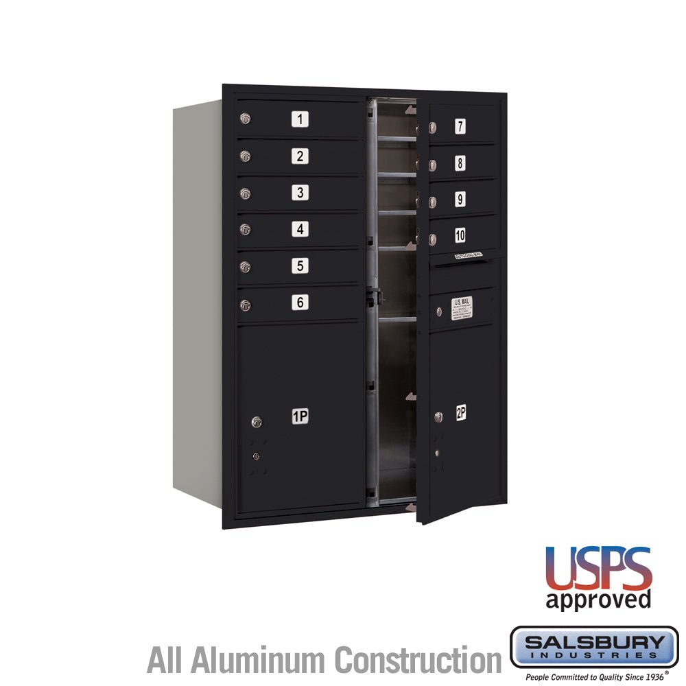 11 Door High Recessed Mounted 4C Horizontal Mailbox with Parcel Lockers - Black