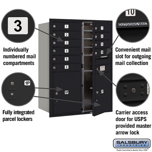 | Outgoing Mail Compartment | Includes mail slot with weather protection hood and USPS master lock access door |