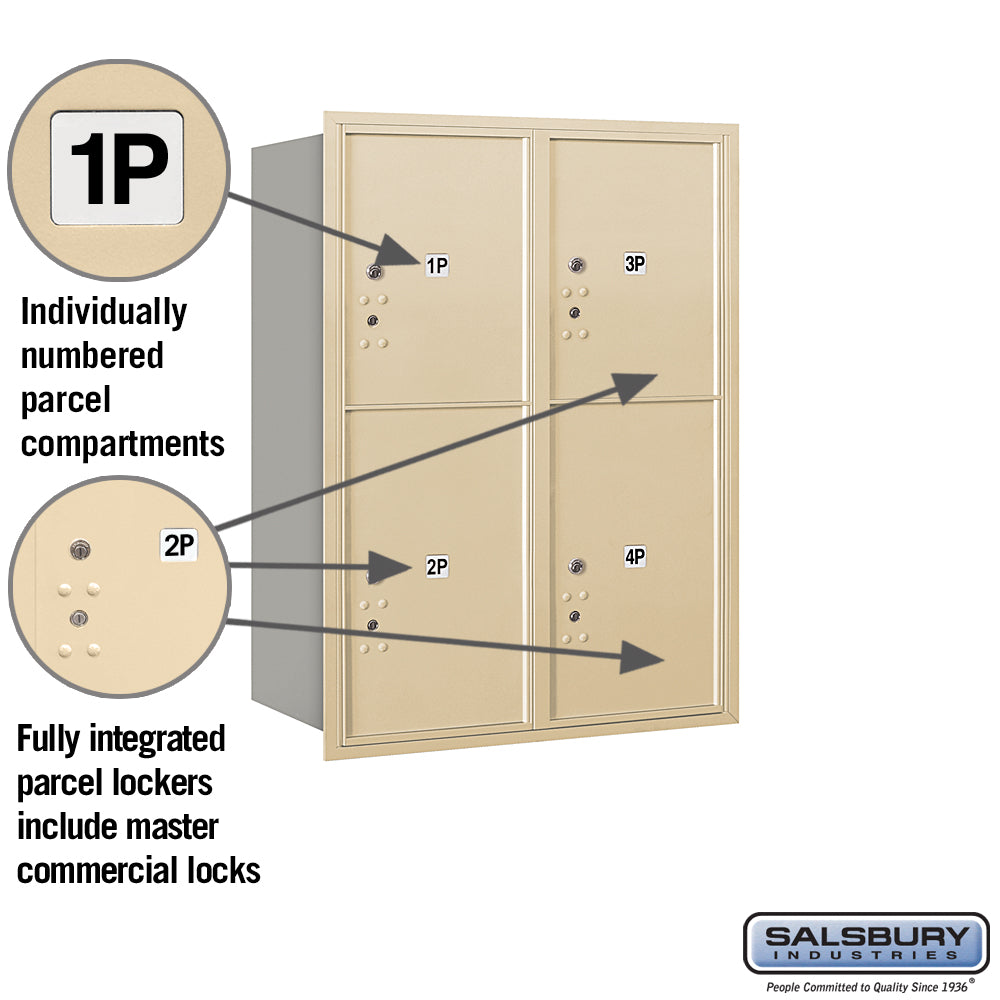 11 Door High Recessed Mounted Parcel Locker with 4 Parcel Lockers - Sandstone - Rear Loading
