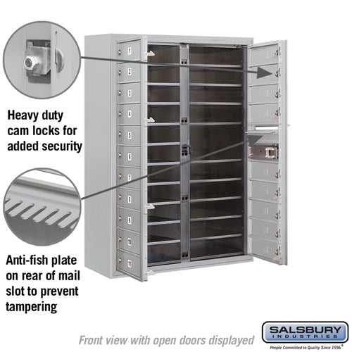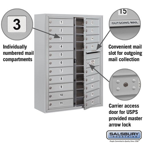 11 Door High Surface Mounted 4C Horizontal Mailbox with 20 Doors in Aluminum with USPS Access