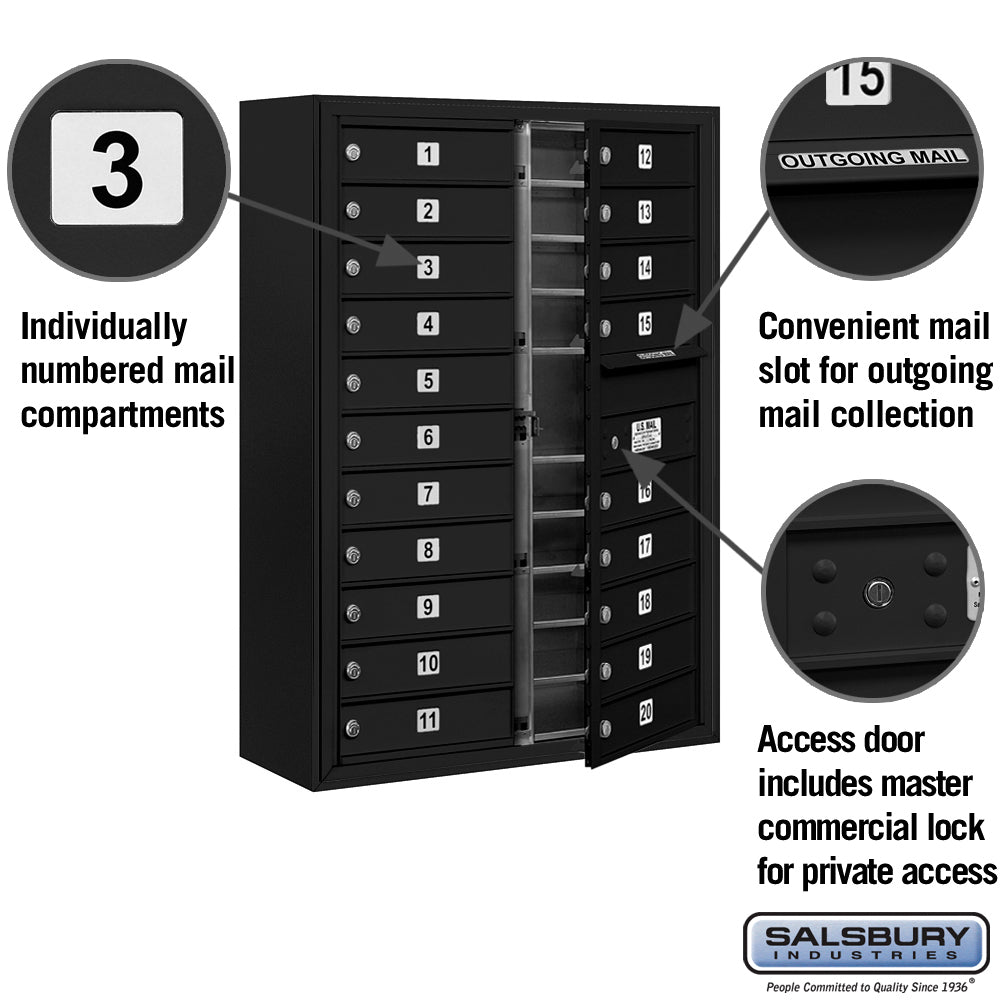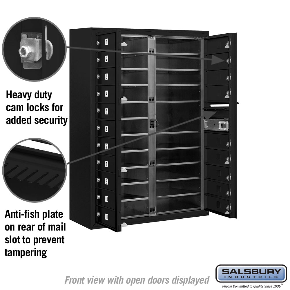 11 Door High Surface Mounted 4C Horizontal Mailbox with 20 Doors in Black with Private Access