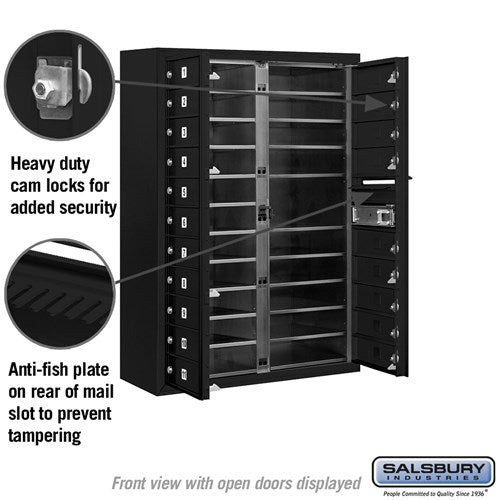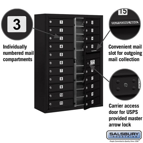 11 Door High Surface Mounted 4C Horizontal Mailbox with 20 Doors in Black with USPS Access