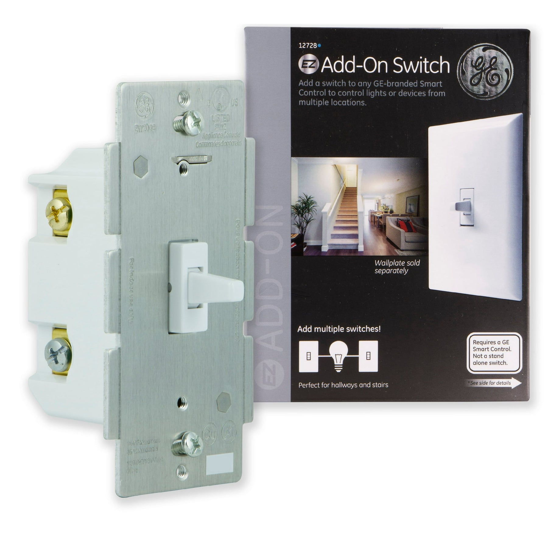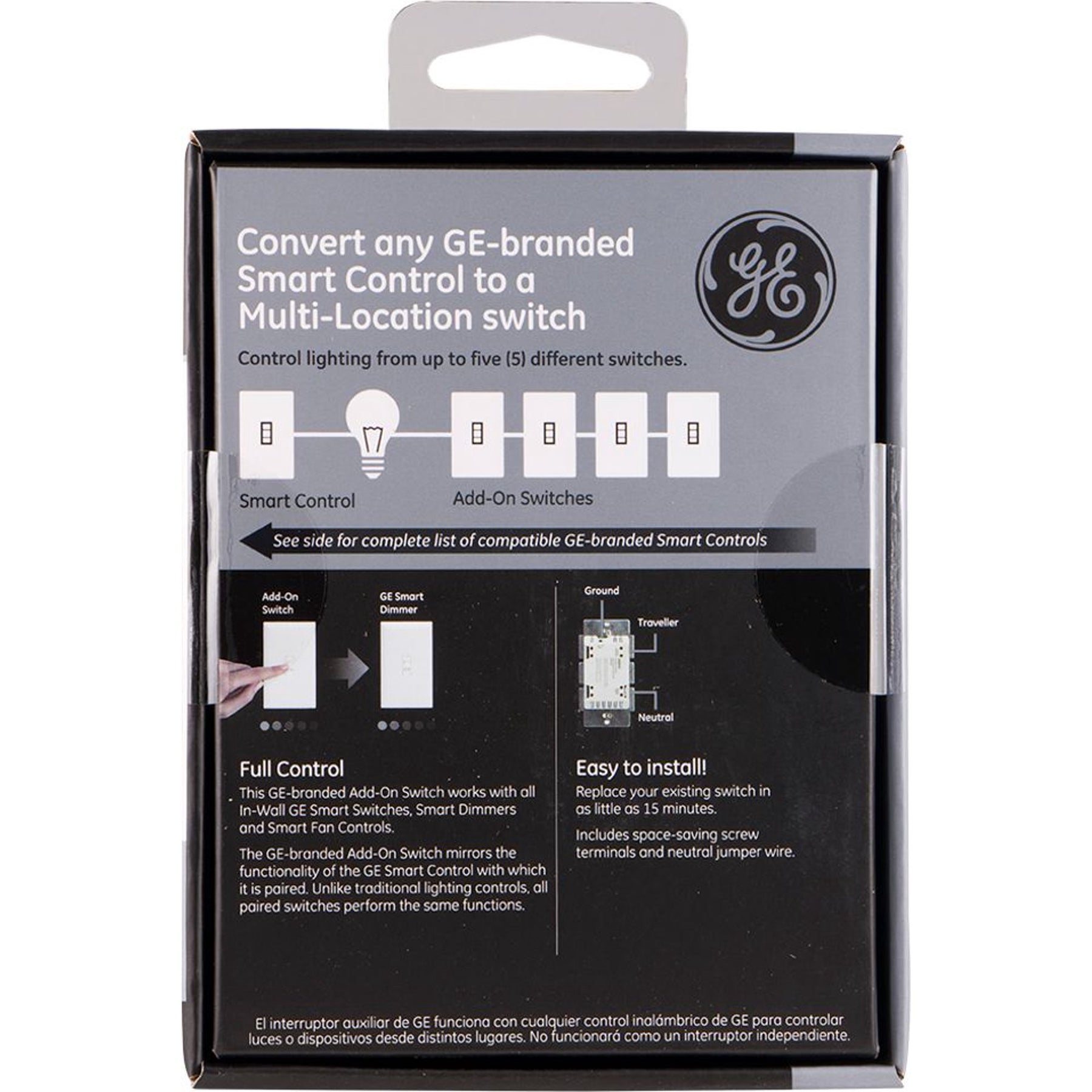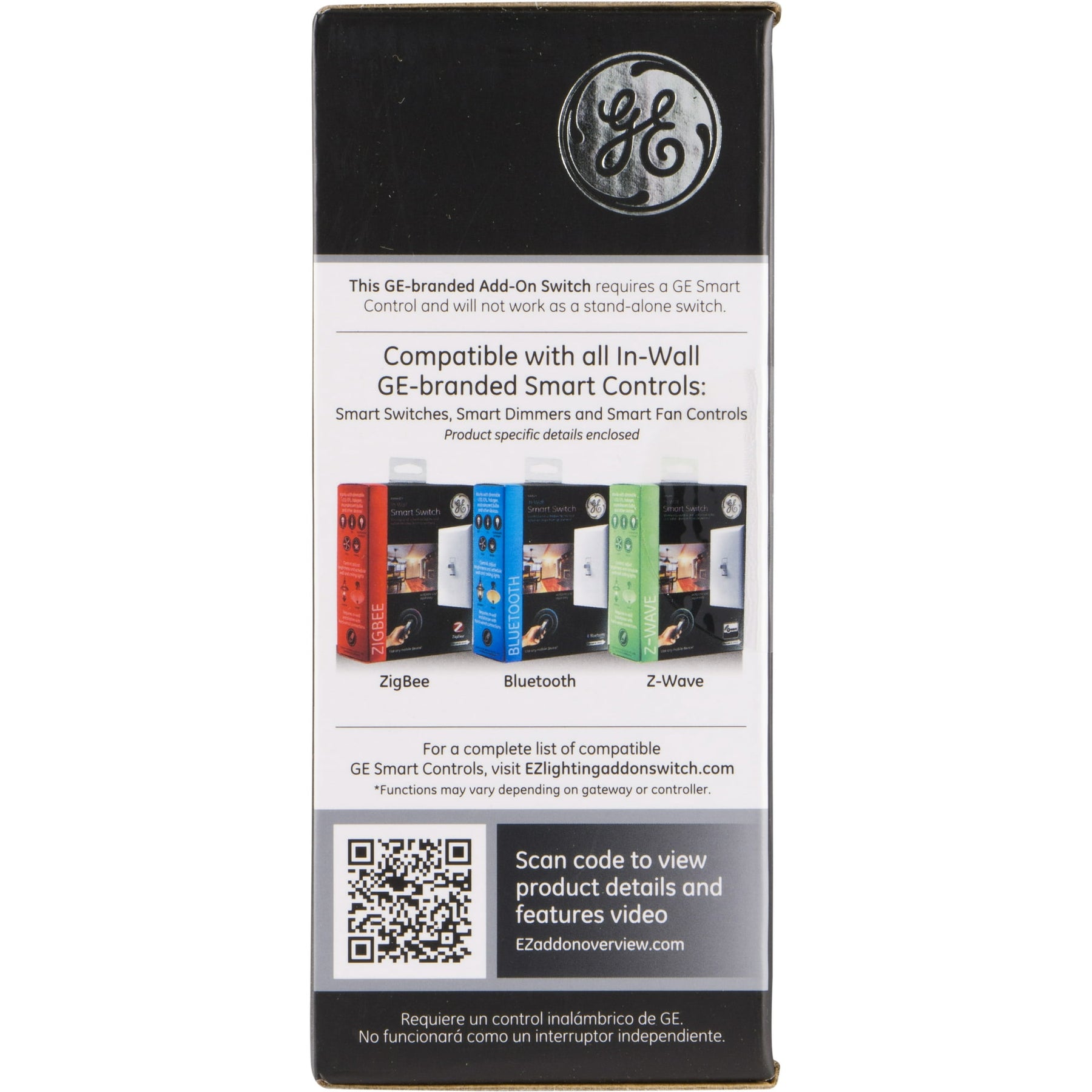 Add multi-location control to your GE smart lighting with this add-on toggle switch. Designed to pair with compatible GE in-wall Z-Wave, ZigBee or Bluetooth smart switches, dimmers, or fan controls, it mirrors the primary control for seamless 3-way or 4-way operation. White finish fits standard wall plates (sold separately).