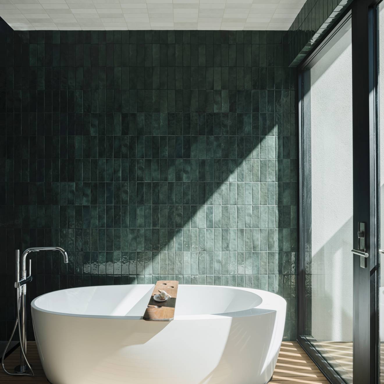 Transform your walls with Cloe’s glossy emerald finish—add this 2.5 x 8 tile to your cart and create a standout space.