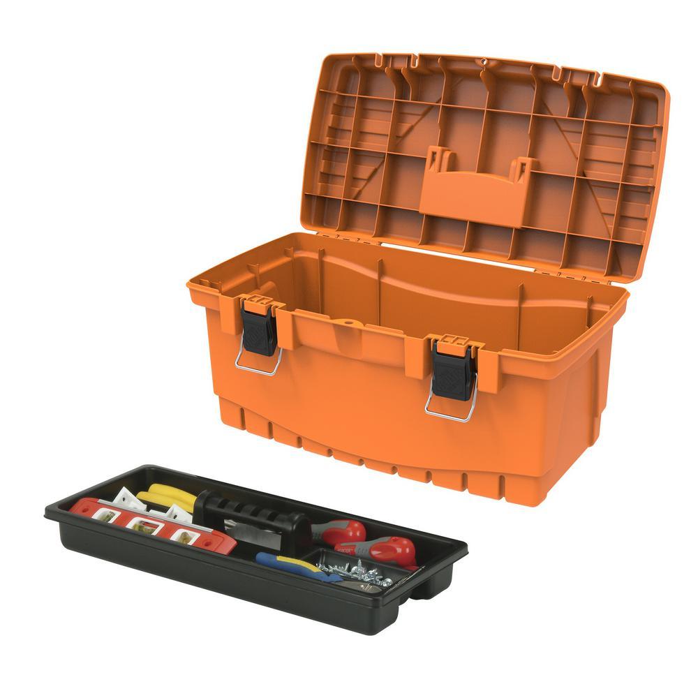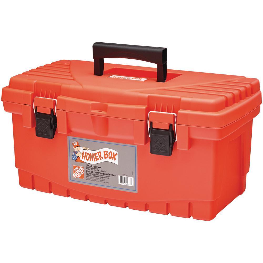 The Homer 19 in. Tool Box is constructed of durable polypropylene and features heavy-duty metal latches and a padlock eye for safe, secure tool storage. The large body accommodates bigger tools, and a removable tool tray is great for small specialty tools. The large, durable resin handle makes carrying a breeze.