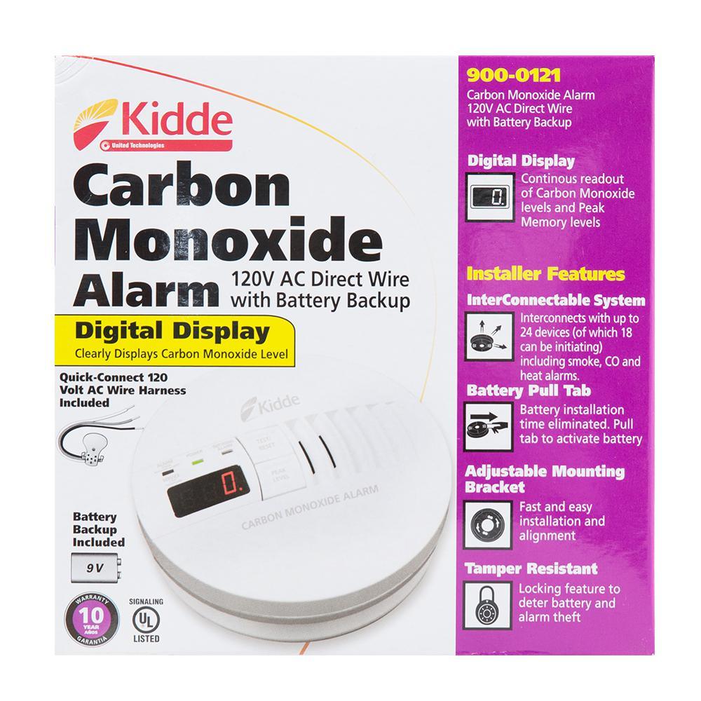 The Kidde FireX Hardwired Interconnectable Carbon Monoxide Alarm with DC Backup features a digital display that updates every 15 seconds to allow for continuous monitoring of carbon monoxide levels in your house. When carbon monoxide is detected, this alarm sounds an 85 dB piezoelectric horn in a 4-beep pattern. The battery backup of this alarm provides power to the unit during a power outage.