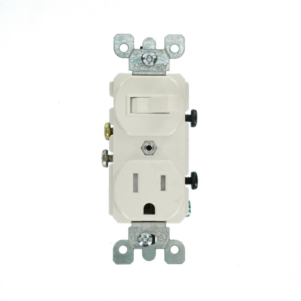 Featuring a toggle switch and an outlet with multiple wiring options in a space-saving design. The Leviton 15 Amp Tamper Switch and Outlet meets the National Electric Code (NEC) to help protect children from electrical shock. The UL-listed outlet features built-in shutters that block the insertion of most small objects.