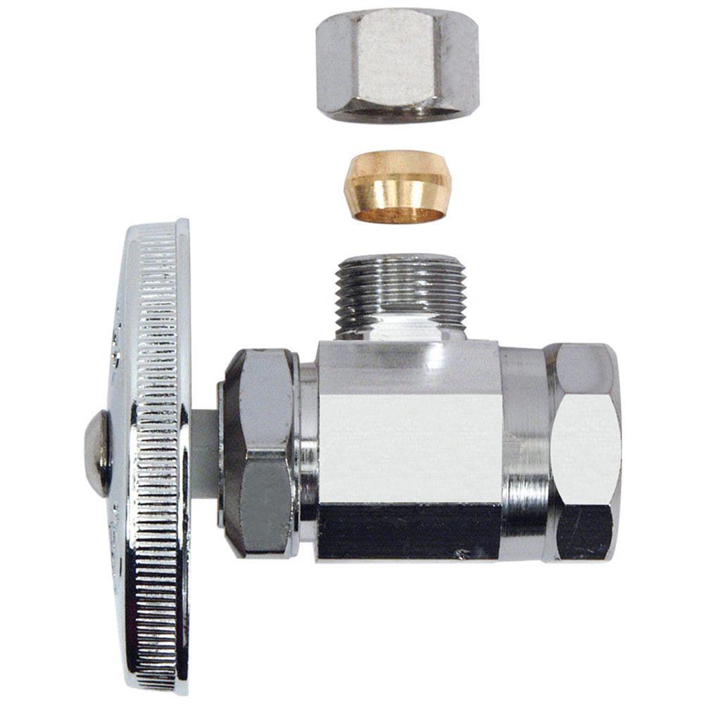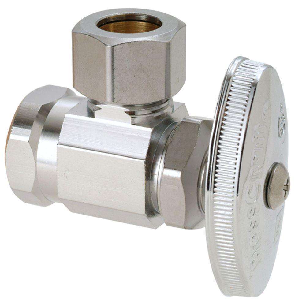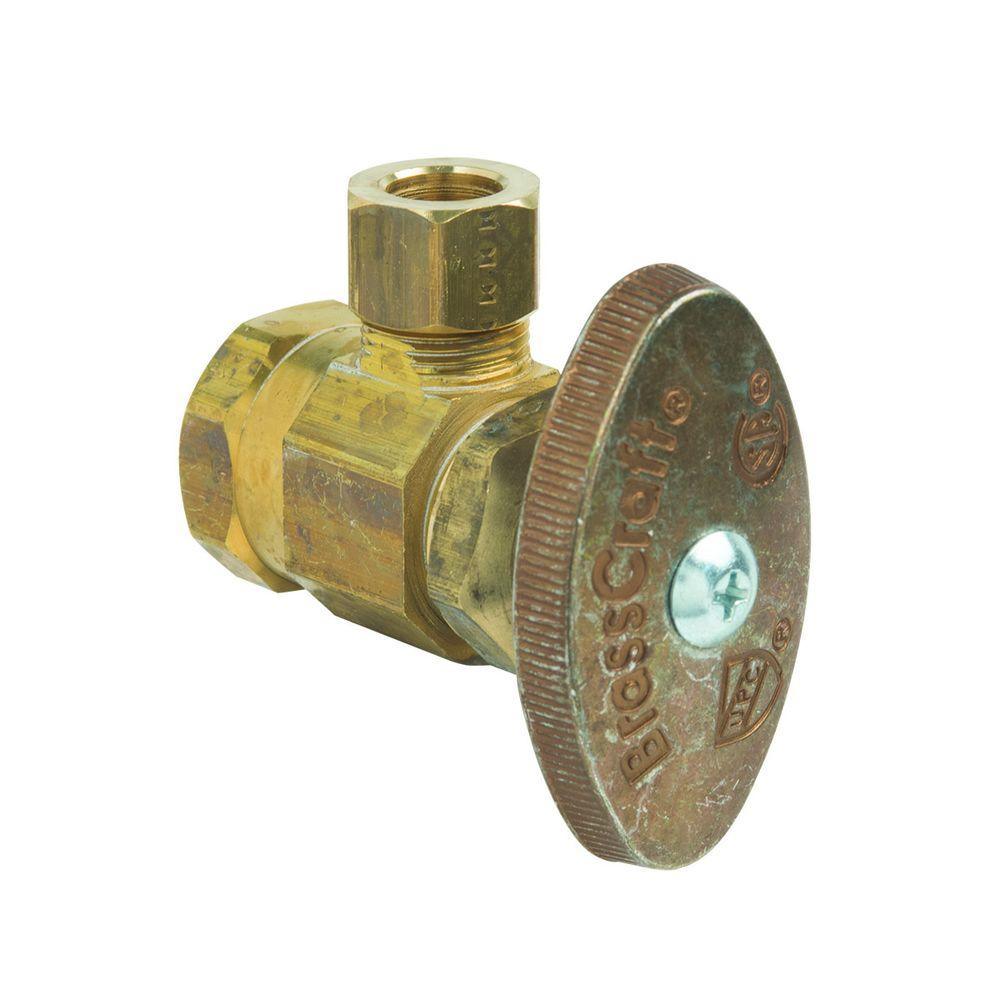 BrassCraft 1/2 in. FIP Inlet x 3/8 in. O.D. Compression Outlet Multi-Turn Angle Valve controls water flow to household plumbing fixtures - faucets, toilets, dishwashers, icemakers, washing machines, etc. The angle valve is most often used where the water pipe enters the room from the floor. With a few turns of the valve handle, you are able to stop the flow of water leading to the plumbing fixture, allowing for maintenance and repair without turning off water to the entire home.