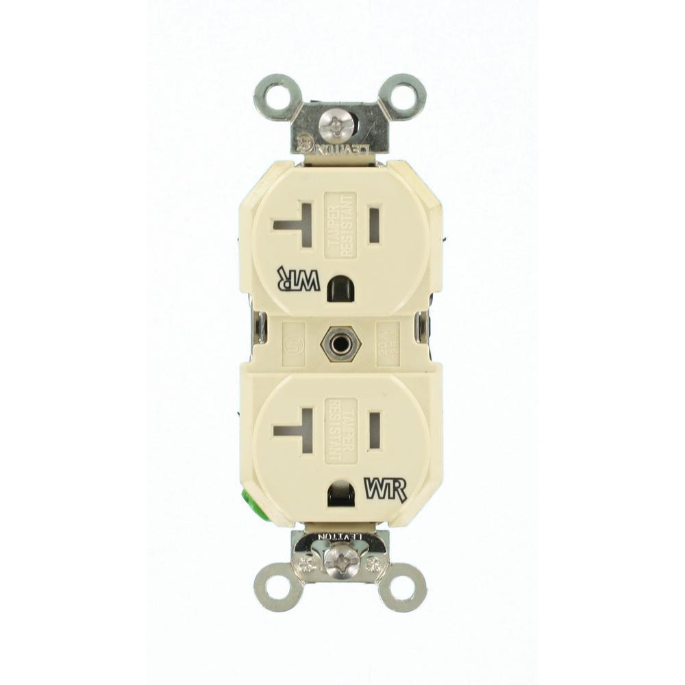 20 Amp Industrial Grade Weather/Tamper Resistant Self Grounding Duplex Outlet, White