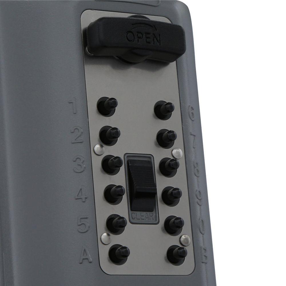 The Kidde Combination Lock Key Safe offers a secure way to store keys for convenient, on-site access. It features a resettable combination lock with more than 4,000 available codes. The cabinet has a heavy zinc shell integrated with stainless-steel reinforcing plates, creating a triple-wall vault. A long-travel bolt and stainless-steel faceplate make the door extremely resistant to being pried, drilled or hammered open. The handle incorporates a clutch mechanism that prevents it from being forced. This safe offers peace of mind and comes with installation hardware included.
