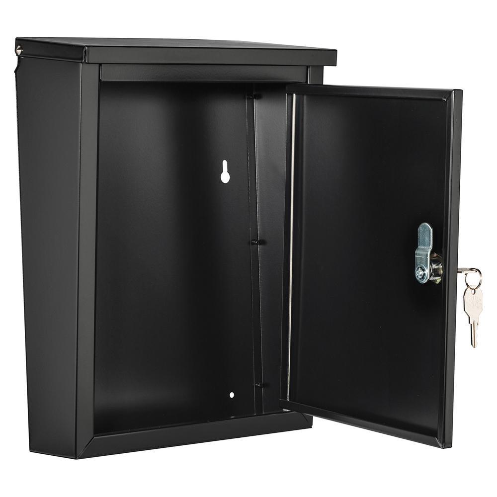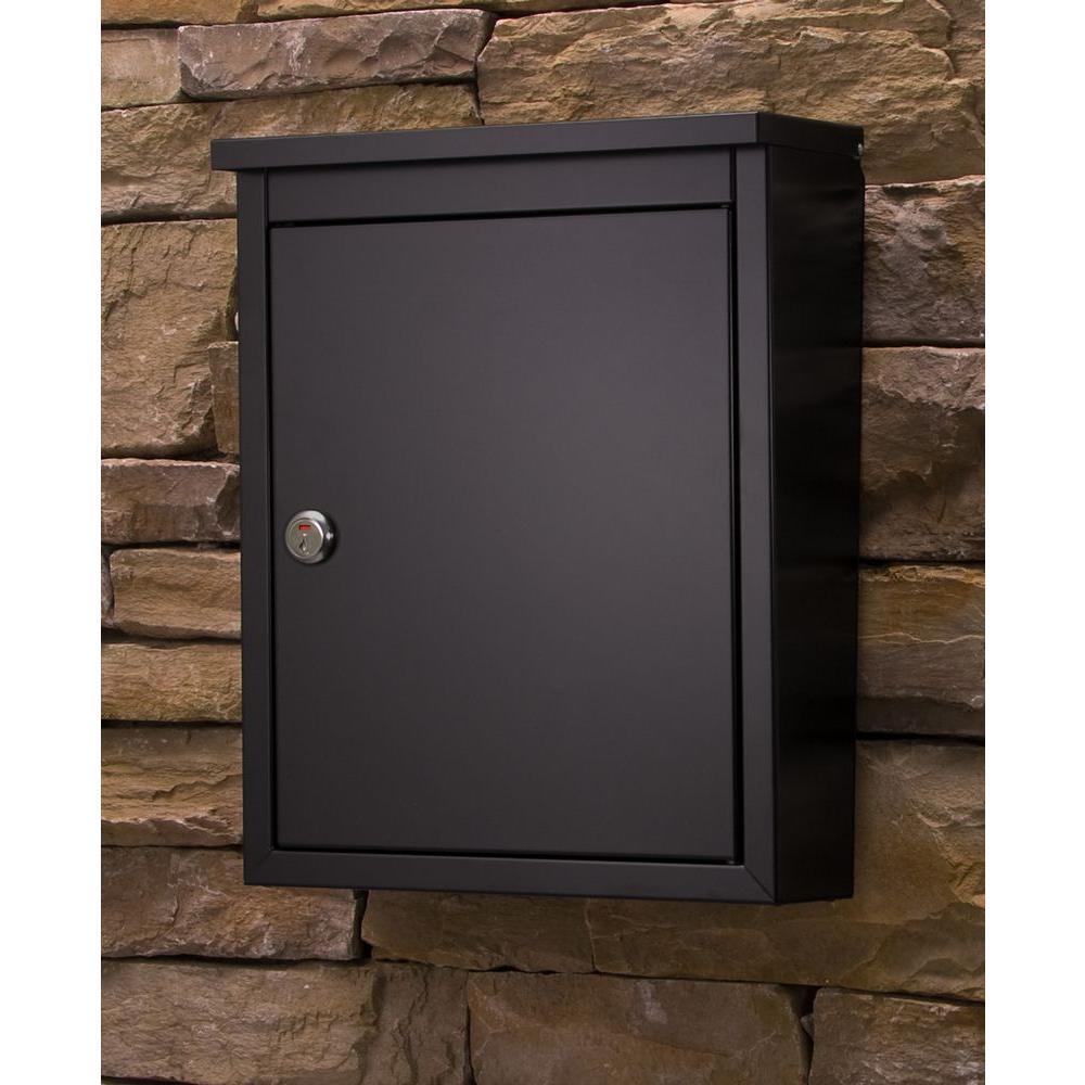 The Architectural Mailboxes Chelsea Wall-Mount Locking Mailbox features a large compartment for ample storage room and an oversize mail slot that is great for larger items, such as magazines. Made from 24-Guage and 22-Gauge galvanized steel with a powder-coat finish, this durable mailbox stands up to wear and the elements, and the stainless-steel cam lock helps keep the contents secure. Mounting hardware, installation instructions and 2 compartment keys are included for easy setup and use.