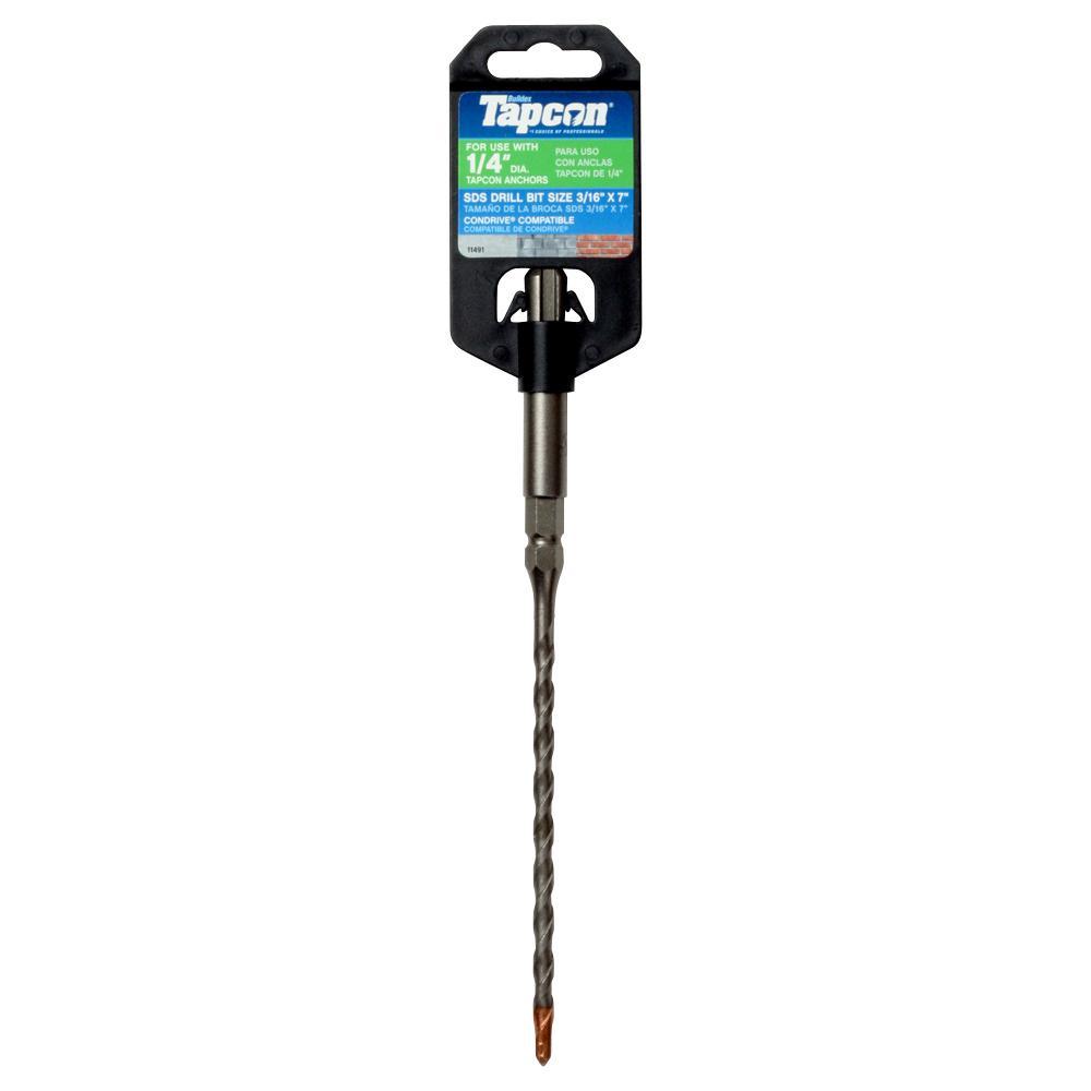 Engineered for heavy-duty use in rotary hammers, the Tapcon SDS carbide drill bit easily drives through Concrete and masonry. The SDS eliminates slippage, providing for productive, high-torque drilling in Concrete and masonry. Seamlessly use Tapcon Drill Bits with Tapcon anchors to ensure drilling precise holes and achieve maximum holding power.