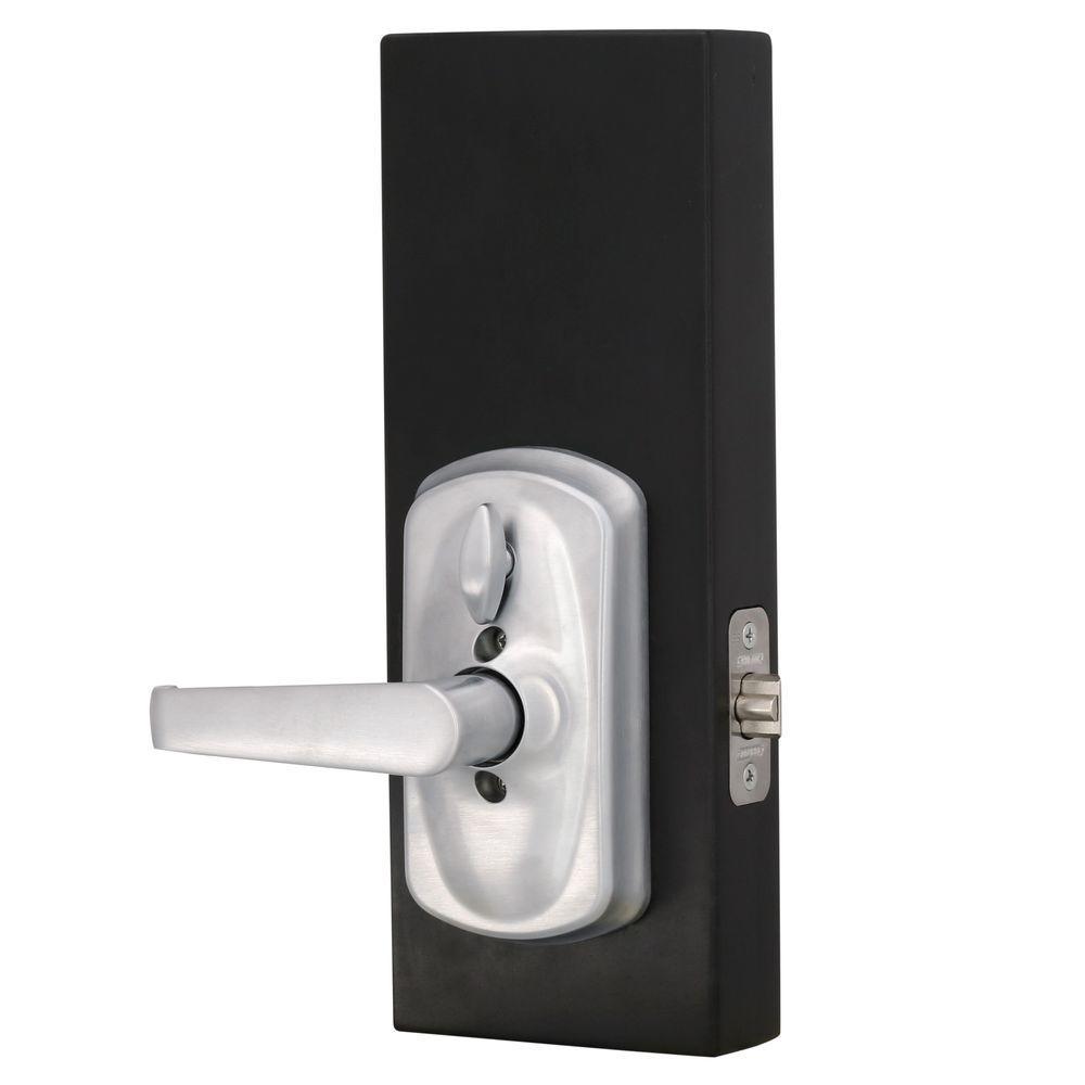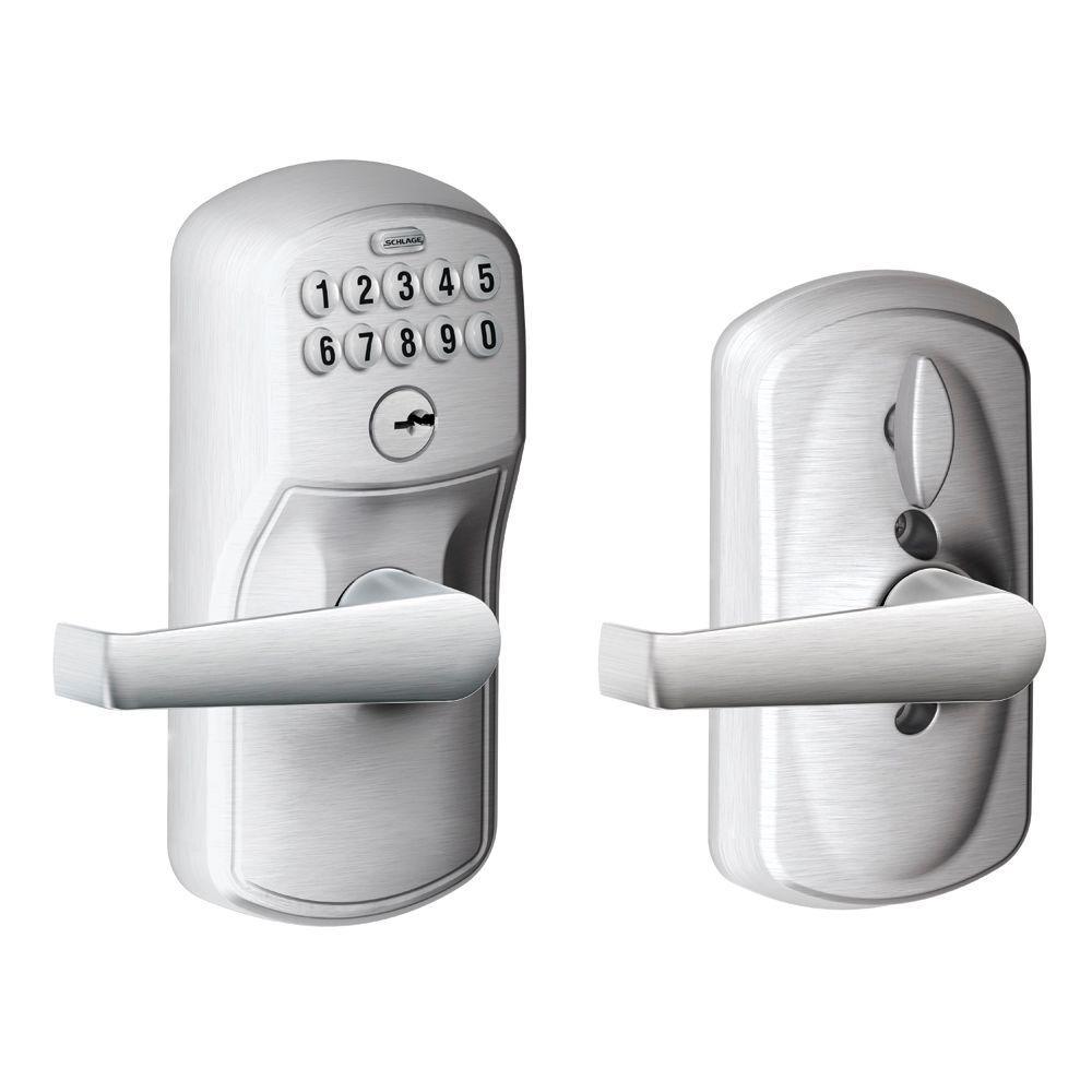 Eliminate the hassle of house keys with the Schlage Elan Satin Chrome Keypad Electronic Door Lever with Plymouth Trim Featuring Flex Lock. With this electronic door lever, you can control entry to your home more easily and securely, and our Flex-Lock feature allows you to set the lock to automatically re-lock after 5 seconds of inactivity. The LED backlight keypad is able to hold up to 19 different user codes for your convenience, and features a low battery indicator. Also, this electronic keypad runs on a single 9-volt battery, which is included. All in a slim profile and stylish trim that pairs perfectly with interior hardware. The Elan lever is sturdy and modest, while the Plymouth trim features an oval shape and straightforward design. The lock becomes especially edgy when finished in Satin Chrome. Plus, it's been designed and tested with strength and durability in mind.