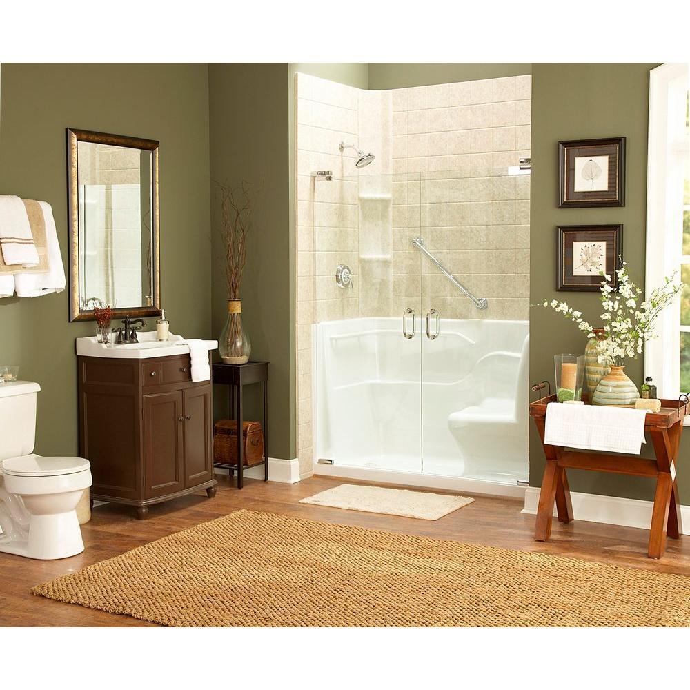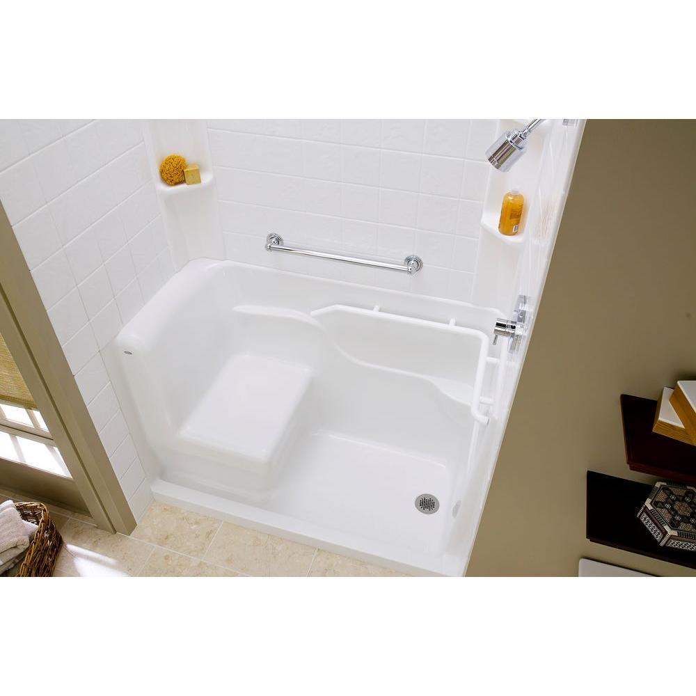 Call 1-877-467-3054 to speak to one of our walk in tub specialists for more information and for assistance selecting the right model tub for you. The New American Standard Seated Shower fits in the space of a standard bathtub and features a built-in, chair-height seat perfect for anyone having difficulty standing in the shower. Fully open on one side, the seat allows easy transfer in and out of the shower. Featuring durable and luxurious cast acrylic construction, the Seated Shower is easy to install thanks to its freestanding metal frame with five adjustable leveling feet.